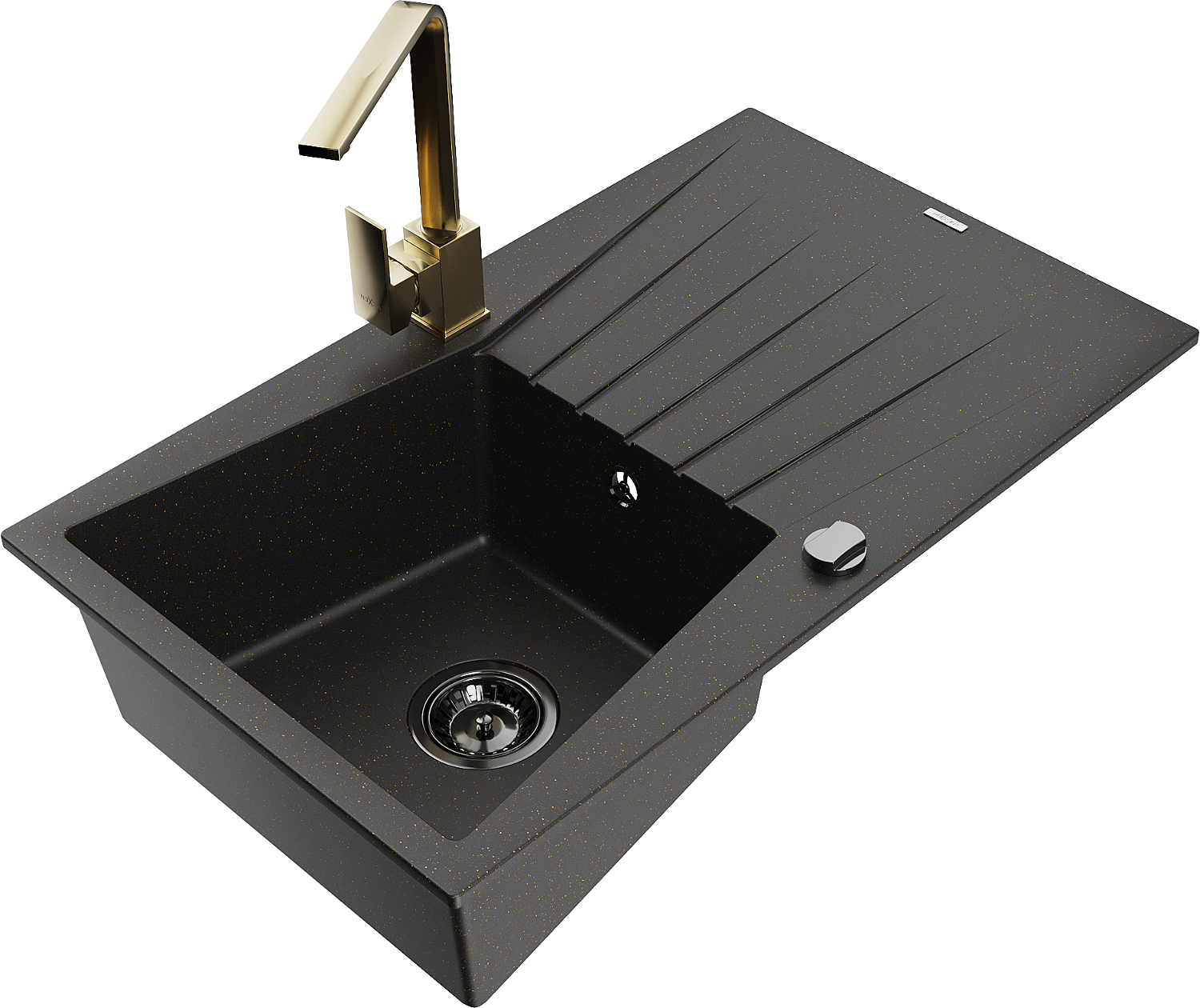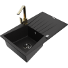 Mexen Cesar кухненска мивка от гранит с 1 отделение, отцедник и смесител Rita, черен/златен металик - 6514-75-670300-50-B