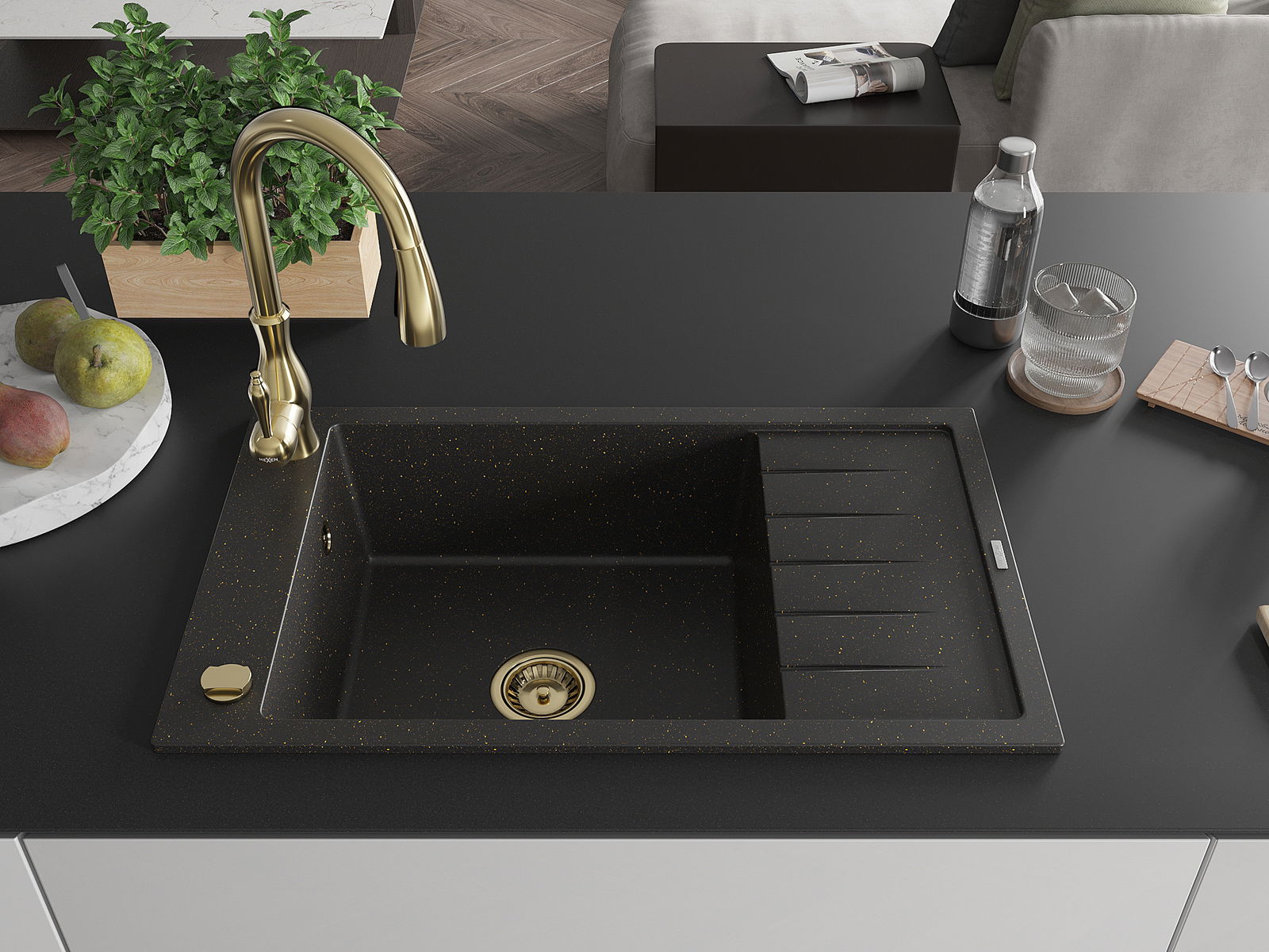 Mexen Elias гранитна мивка с 1 отделение, с отцедник и кухненски смесител