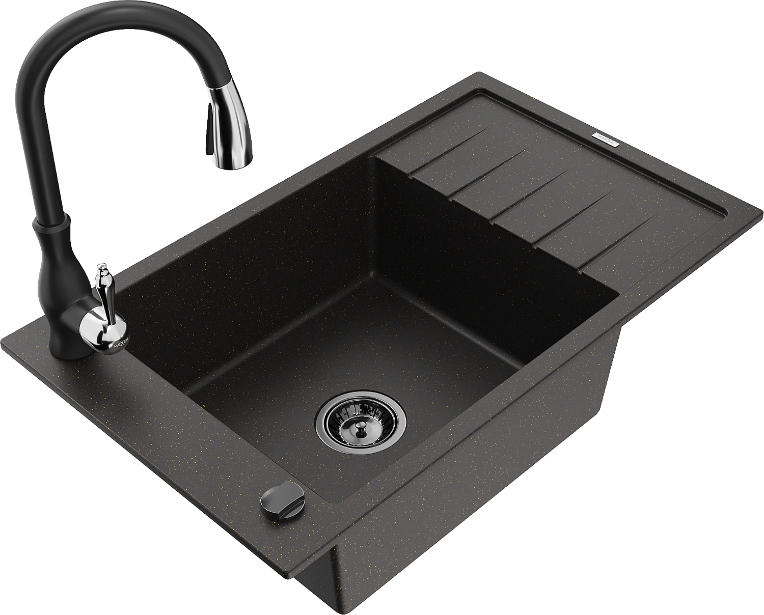 Mexen Elias кухненска мивка от гранит с 1 отделение и отцедник с кухненски смесител Savita, черен/златист металик - 6511-75-672?