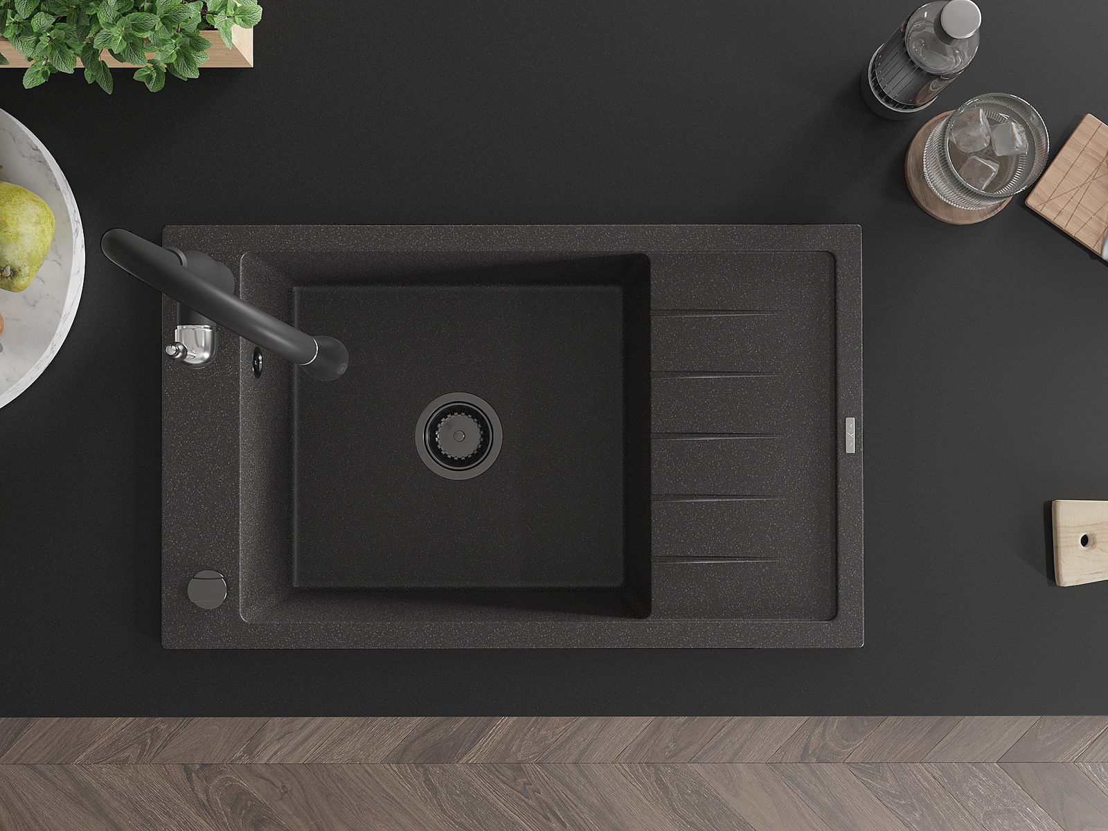 Мивката е направена от висококачествен гранит. Това е елегантно и най -вече практично допълнение към всяка кухня, независимо от нейния стил. Висококачествената и гранитна издръжливост осигуряват много години употреба.