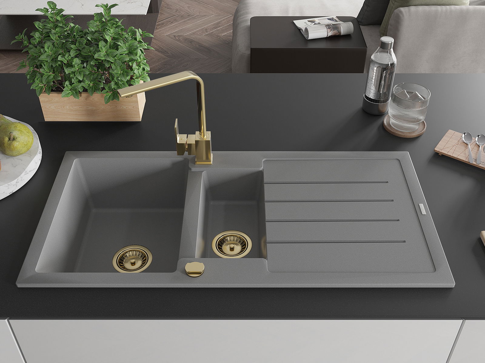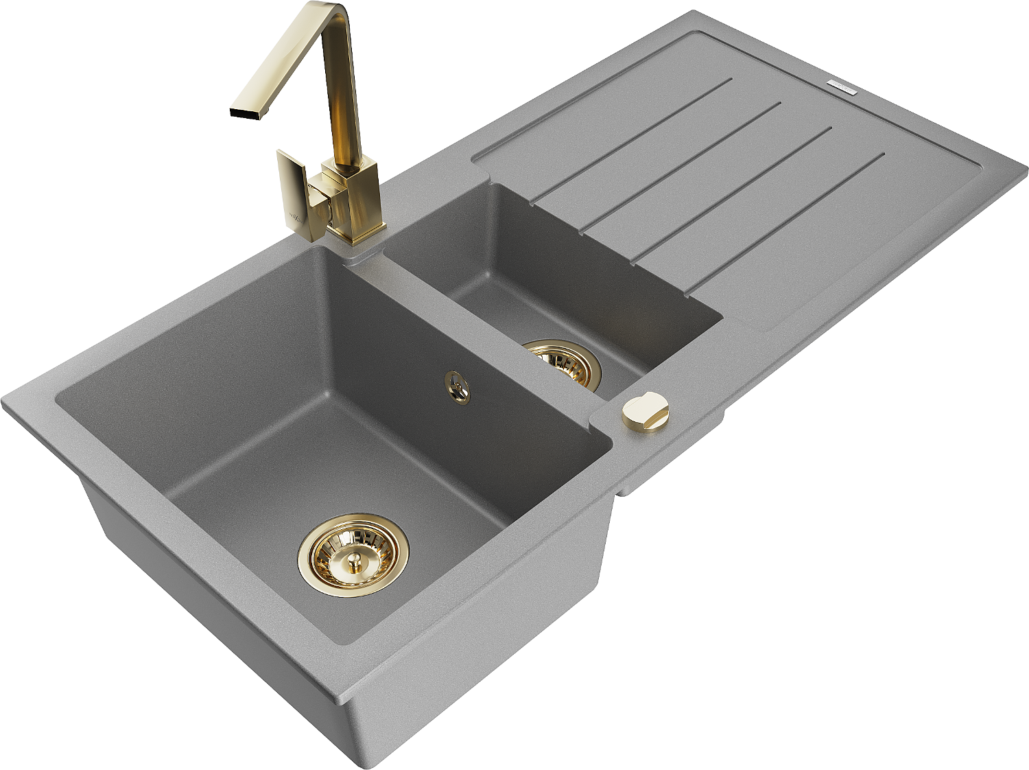 Mexen Andres гранитна мивка с 1,5 отделения, отцедник и кухненски смесител Rita, сив - 6515-71-670300-50