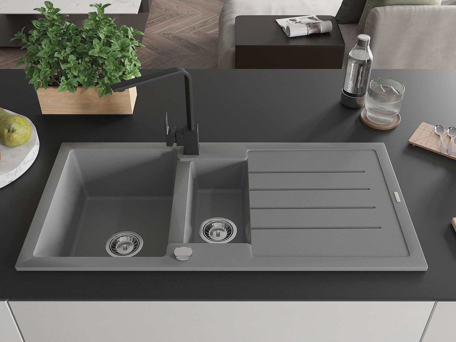 Мивката е направена от висококачествен гранит. Това е елегантно и най -вече практично допълнение към всяка кухня, независимо от нейния стил. Висококачествената и гранитна издръжливост осигуряват много години употреба.