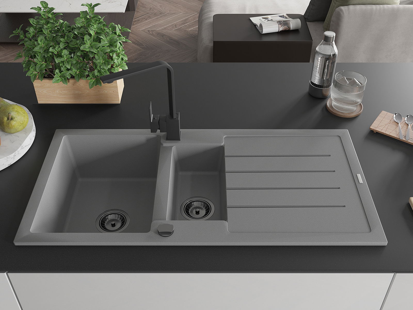 Мивката е направена от висококачествен гранит. Това е елегантно и най -вече практично допълнение към всяка кухня, независимо от нейния стил. Висококачествената и гранитна издръжливост осигуряват много години употреба.