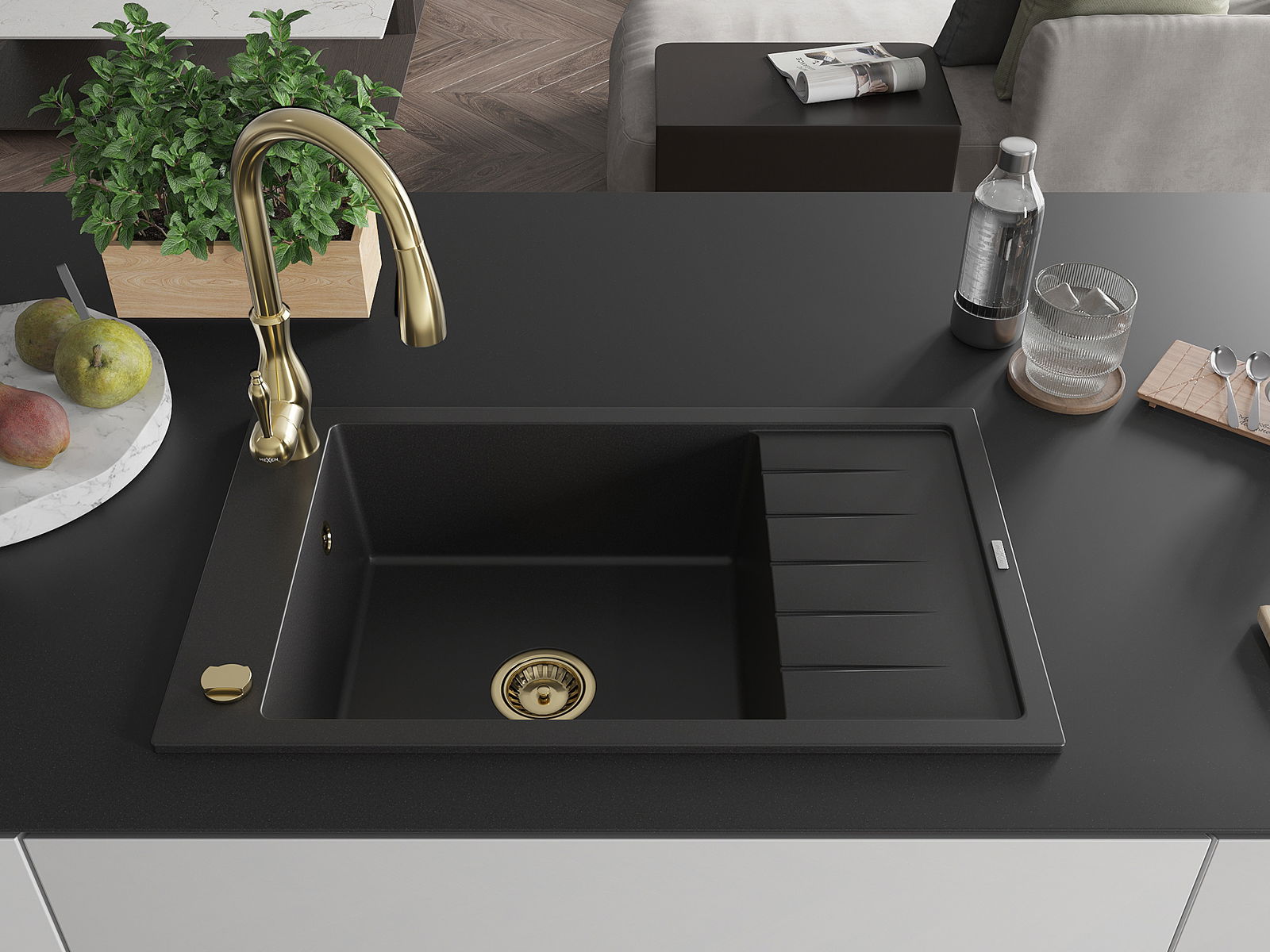 Мивката е направена от висококачествен гранит. Това е елегантно и най -вече практично допълнение към всяка кухня, независимо от нейния стил. Висококачествената и гранитна издръжливост осигуряват много години употреба.