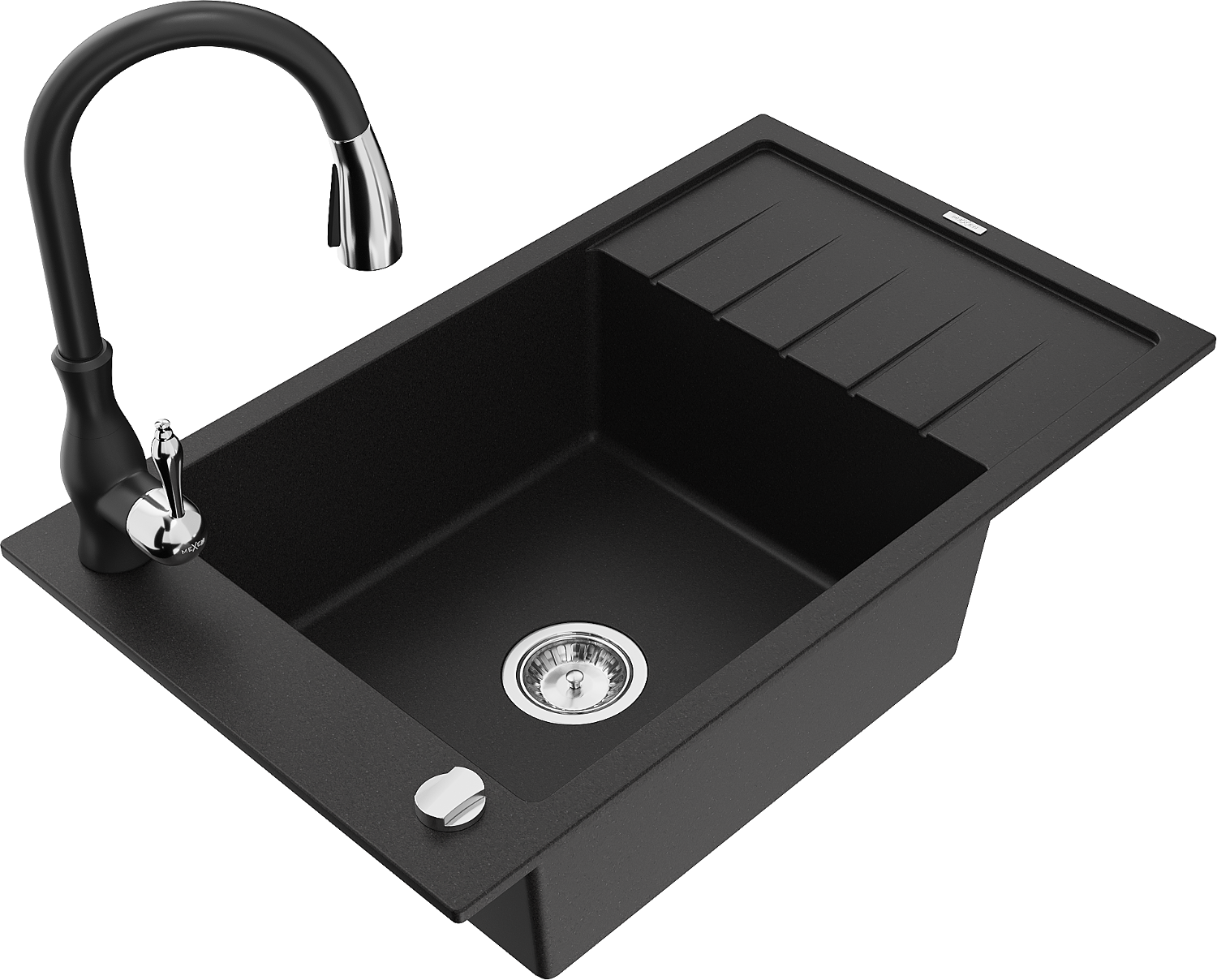 Mexen Elias гранитна мивка с 1 отделение с капака и кухненски смесител Savita,