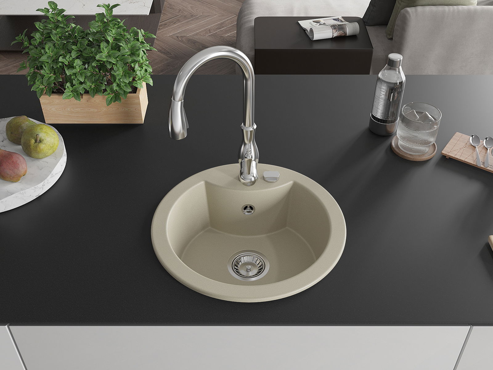 Мивката е направена от висококачествен гранит. Това е елегантно и най -вече практично допълнение към всяка кухня, независимо от нейния стил. Висококачествената и гранитна издръжливост осигуряват много години употреба.