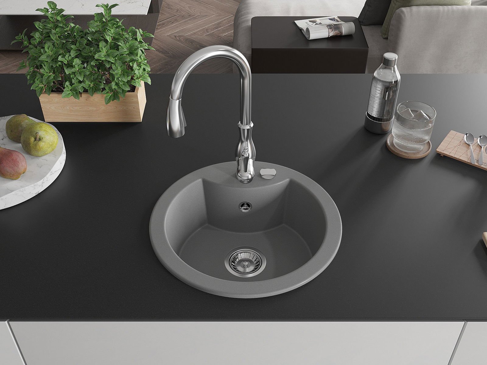 Mexen Diego гранитна мивка с 1 отделение и кухненски смесител Savita, сива