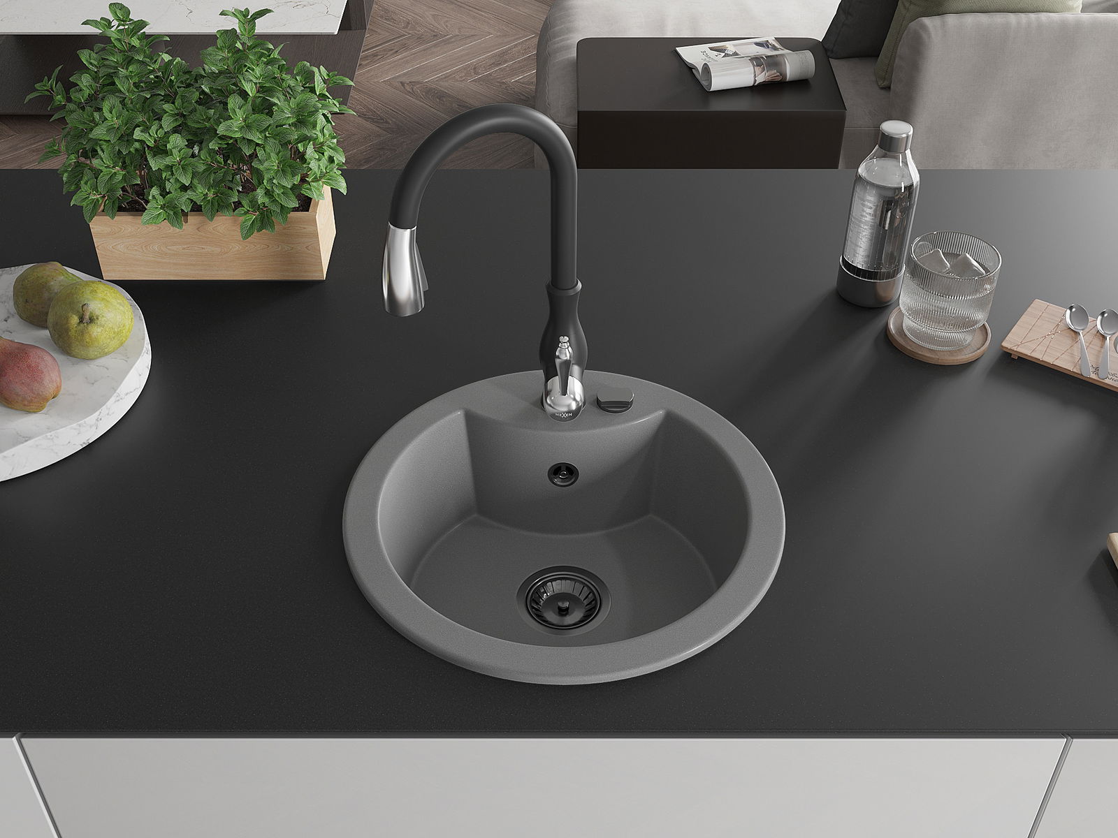 Мивката е направена от висококачествен гранит. Това е елегантно и най -вече практично допълнение към всяка кухня, независимо от нейния стил. Висококачествената и гранитна издръжливост осигуряват много години употреба.