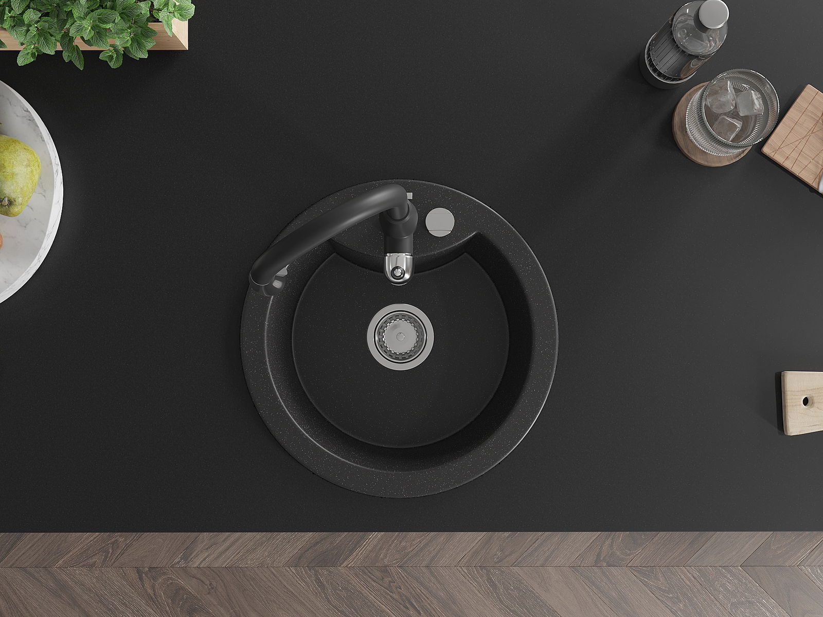 Мивката е направена от висококачествен гранит. Това е елегантно и най -вече практично допълнение към всяка кухня, независимо от нейния стил. Висококачествената и гранитна издръжливост осигуряват много години употреба.
