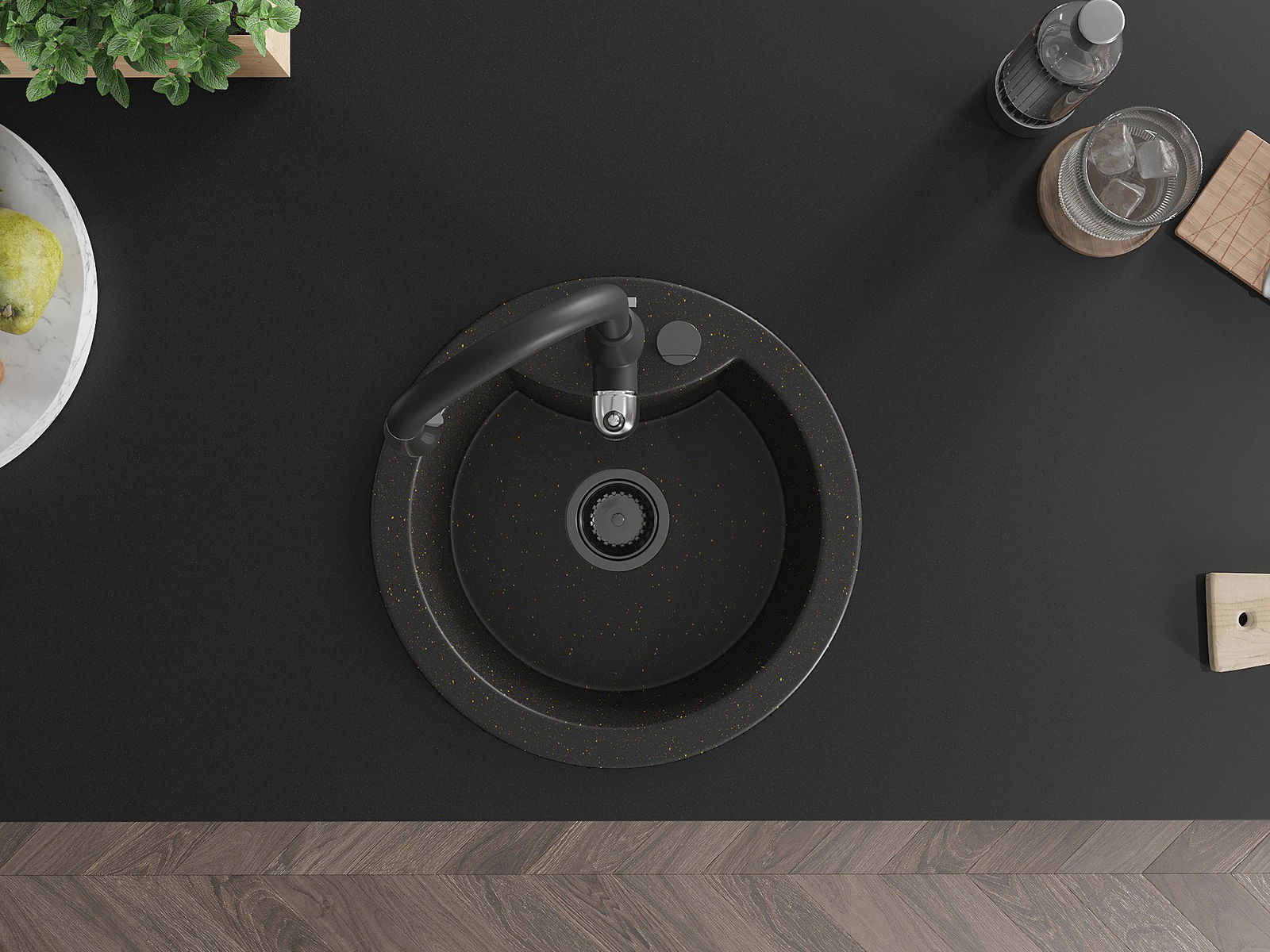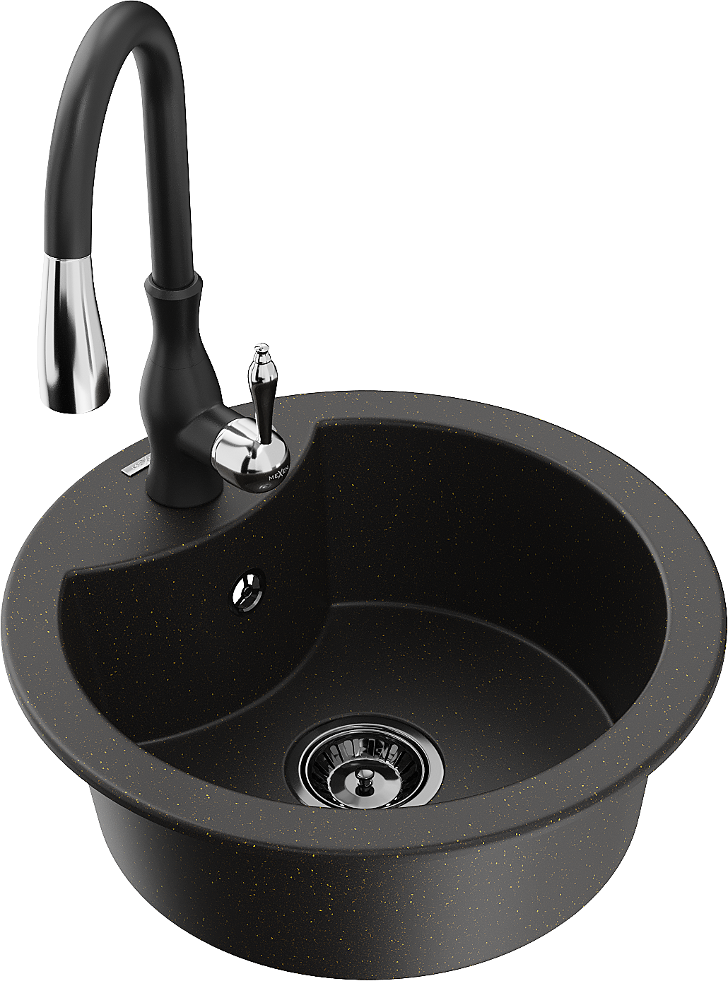 Mexen Diego гранитна мивка с 1 камера с кухненски кран Savita, черен/златист