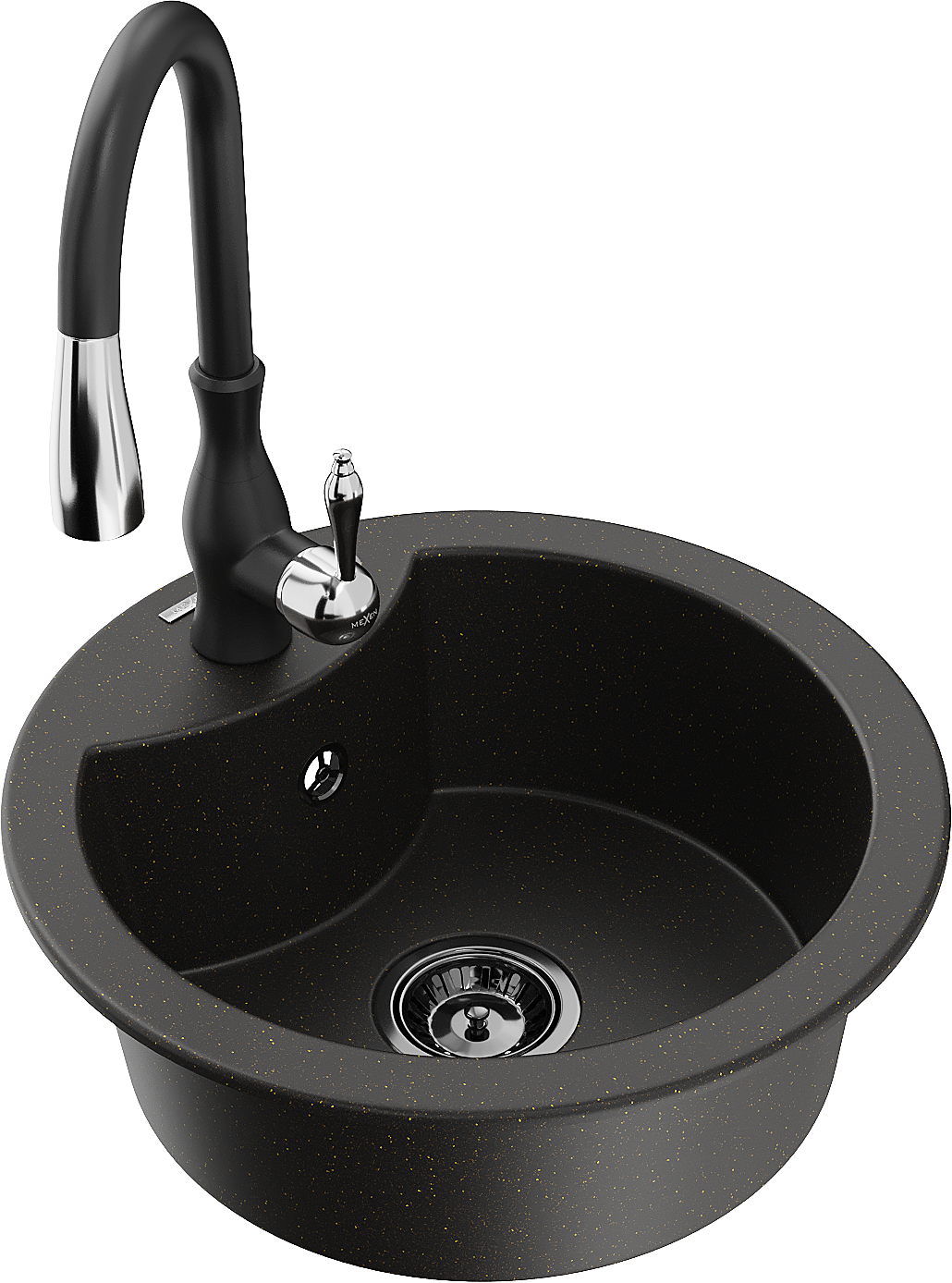 Мивка за вграждане Mexen Diego 1-коморна с кухненски смесител Savita, черен/златист металик - 6512-75-672601-70-B
