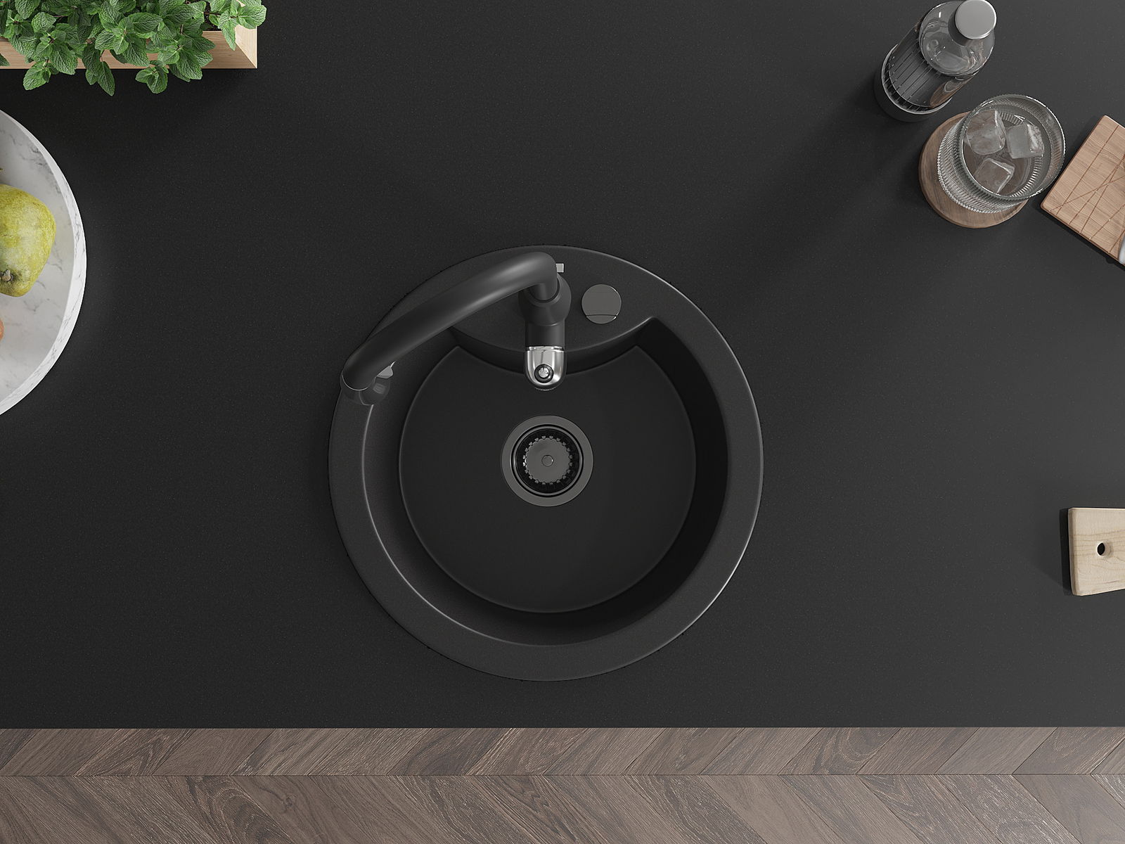 Мивката е направена от висококачествен гранит. Това е елегантно и най -вече практично допълнение към всяка кухня, независимо от нейния стил. Висококачествената и гранитна издръжливост осигуряват много години употреба.