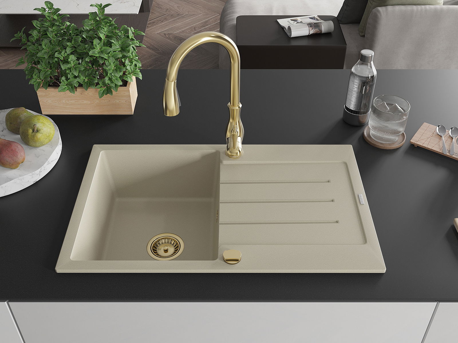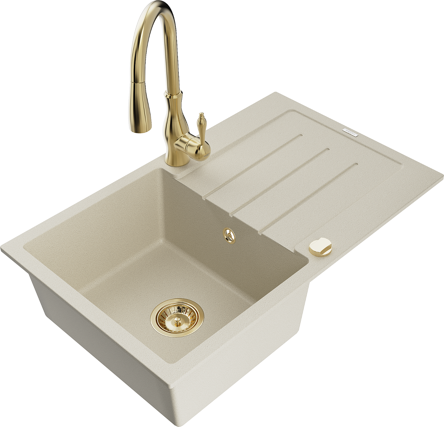 Mexen Bruno гранитна мивка с 1 отделение с отцедник и кухненски смесител Savita, бежов - 6513-69-672601-50