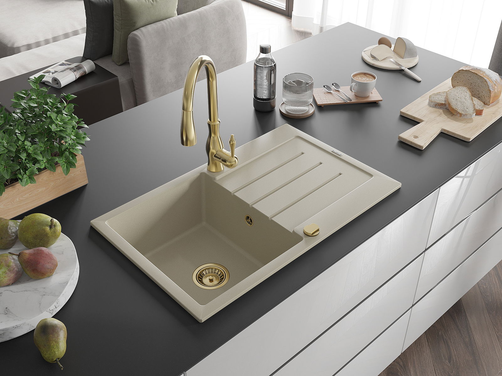 Мивката е направена от висококачествен гранит. Това е елегантно и най -вече практично допълнение към всяка кухня, независимо от нейния стил. Висококачествената и гранитна издръжливост осигуряват много години употреба.