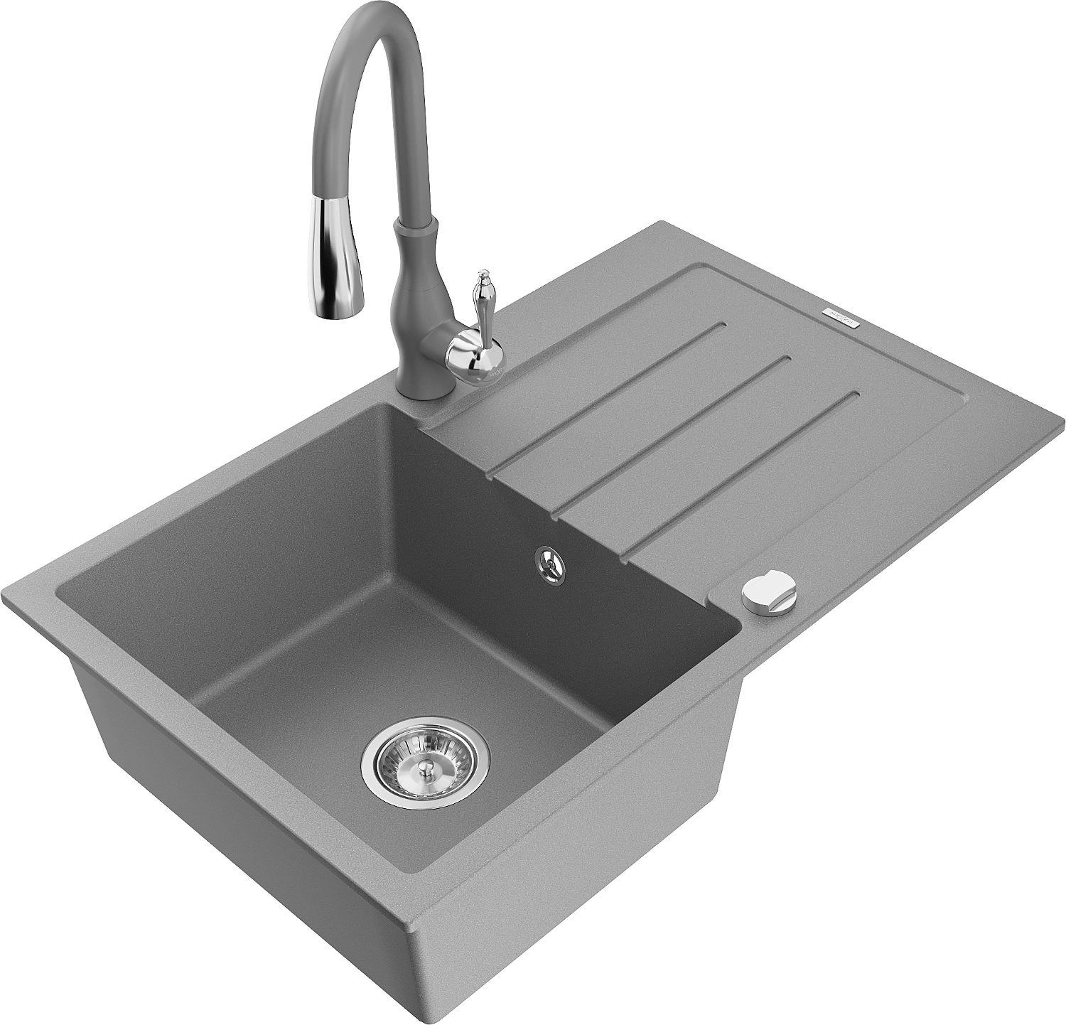 Mexen Bruno гранитна мивка 1-коморна с отцедник и кухненски смесител Savita, сив - 6513-71-672601-71
