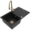 Mexen Bruno гранитна кухненска мивка с 1 камера с плот и кухненски смесител Savita, черен/сребърен металик - 6513-73-672601-50