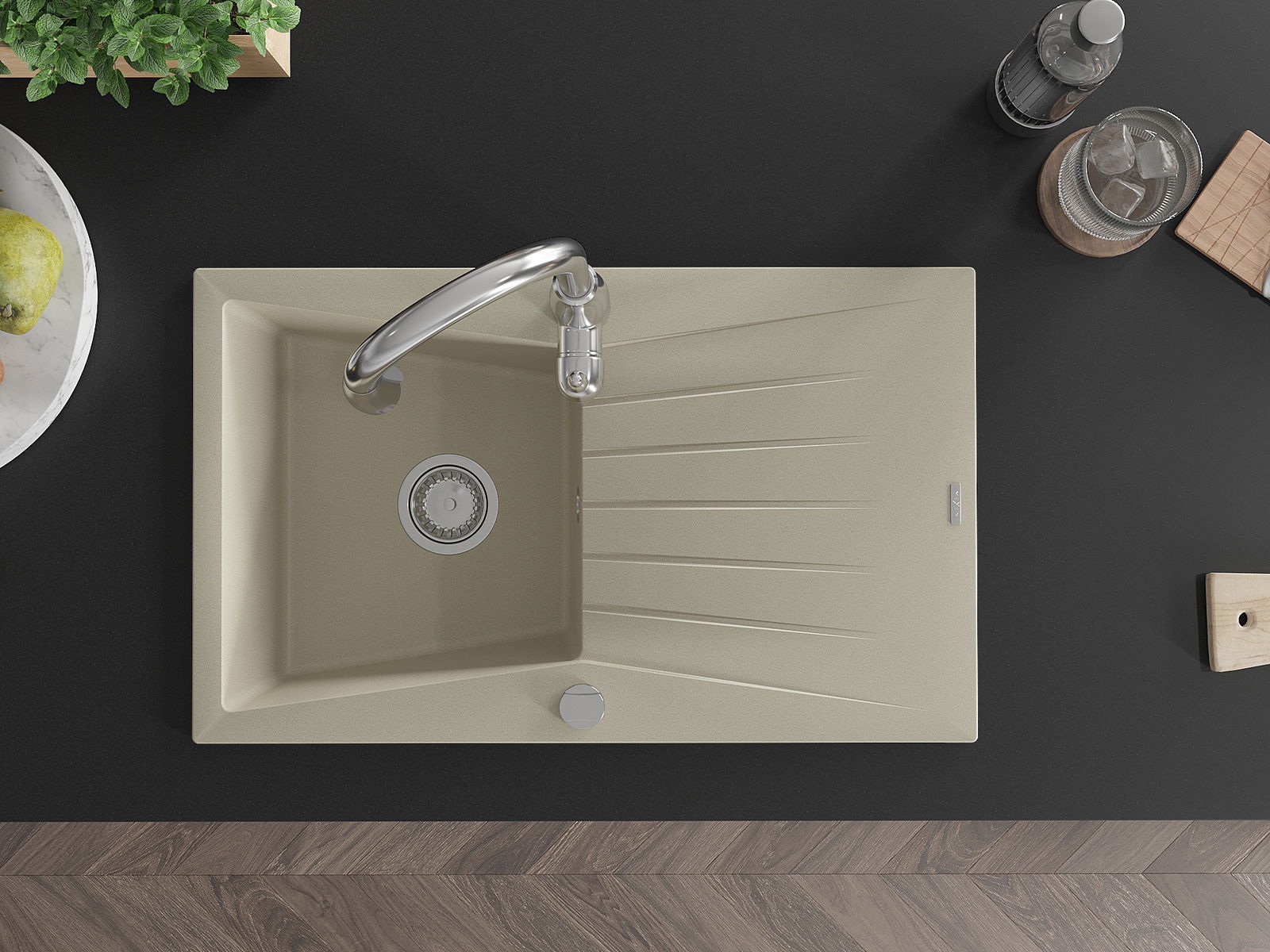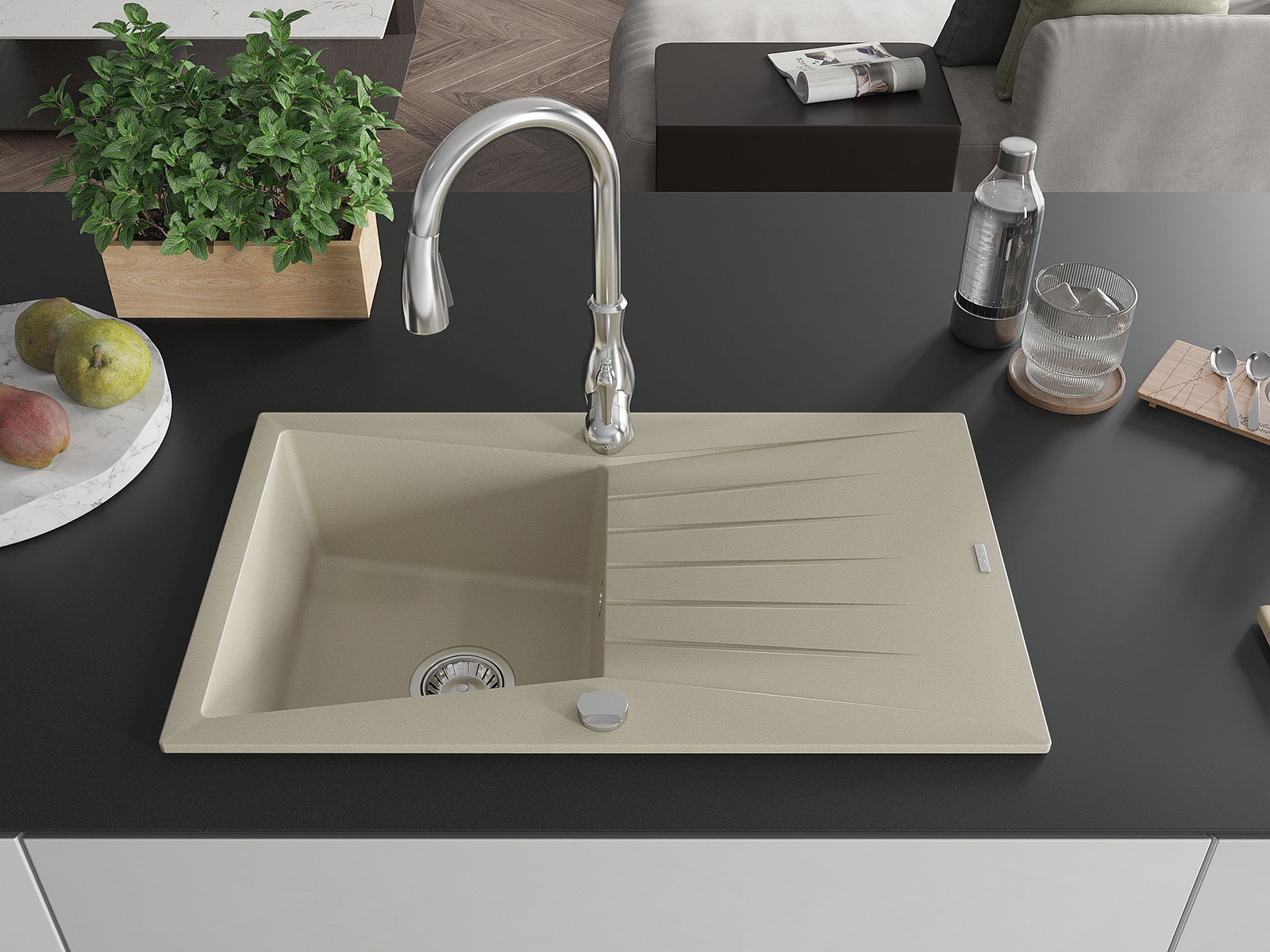 Повърхността на мивката е устойчива на петна и обезцветяване, благодарение на които е лесно да се почиства и запазва цвета си за дълго време. Естетически и практически допълващи всяка кухня.