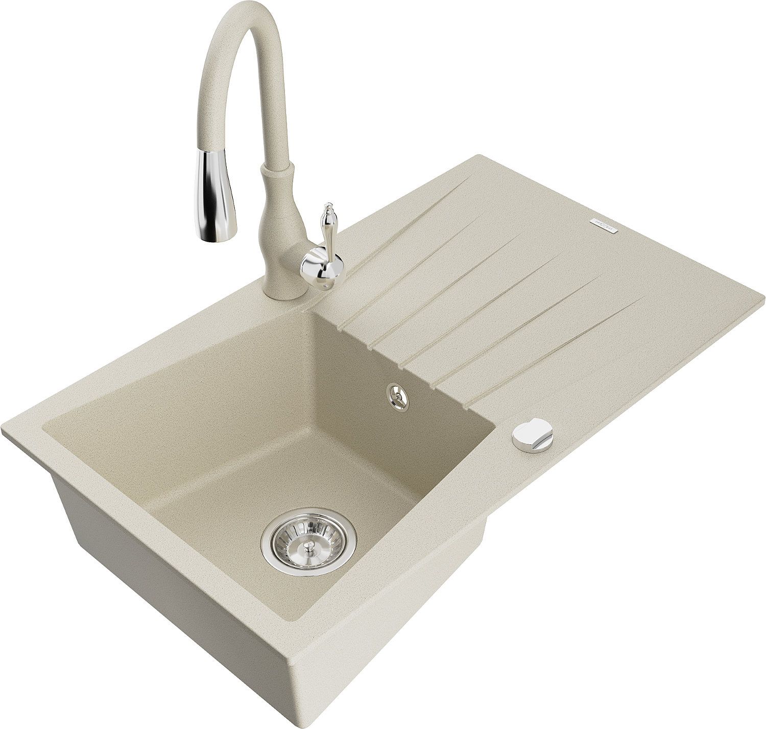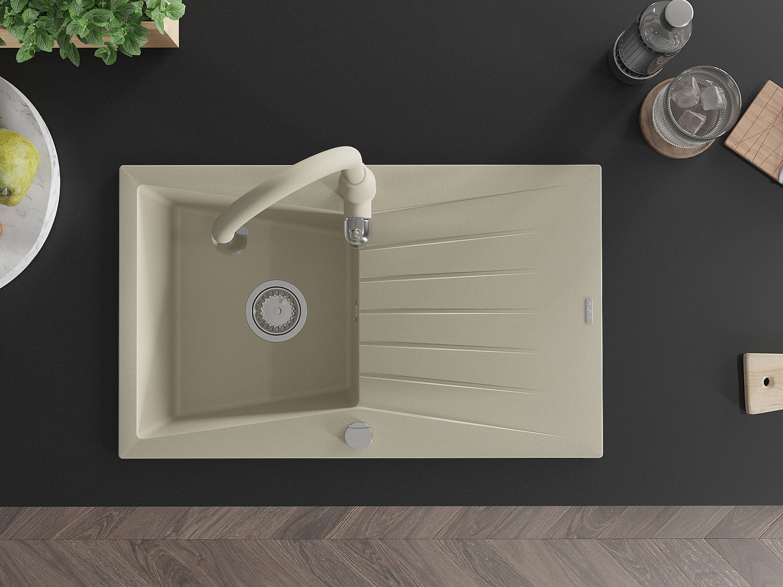 Mexen Cesar гранитна мивка 1-камерна с отцедник и кухненски смесител Savita, бежов - 6514-69-672601-69