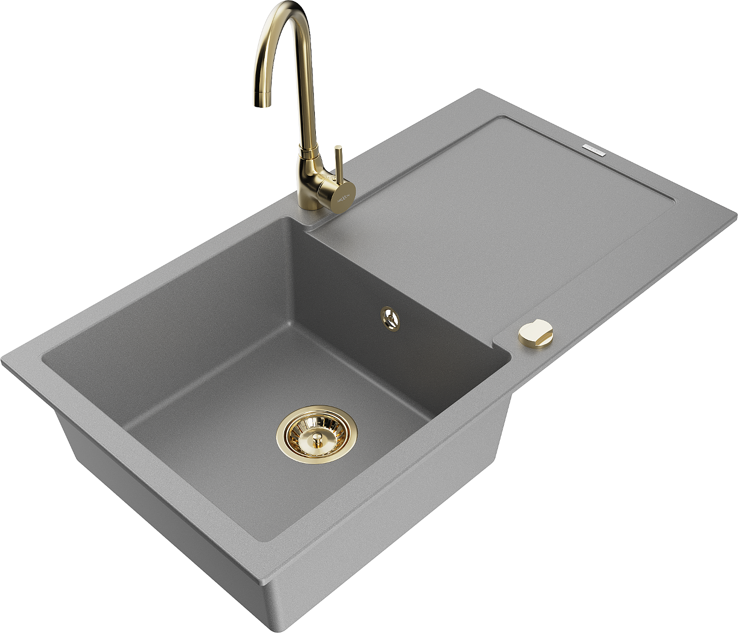 Mexen Leo гранитна мивка с 1 отделение и сушилня и кухненски кран Telma, сива - 6501-71-670200-50