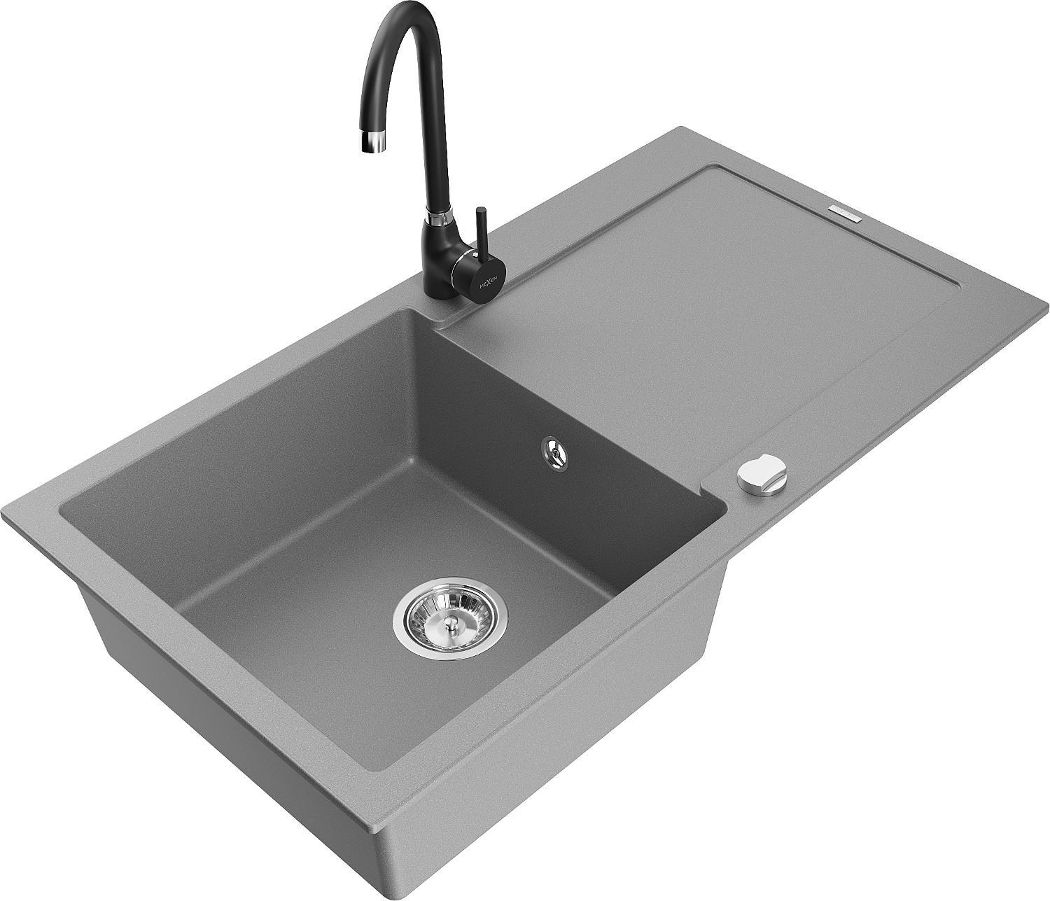 Mexen Leo кухненска мивка от гранит с 1 отделение със сушилня и кухненски смесител Telma, сив - 6501-71-670200-70