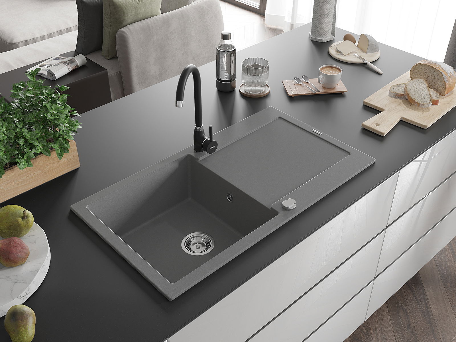 Мивката е направена от висококачествен гранит. Това е елегантно и най -вече практично допълнение към всяка кухня, независимо от нейния стил. Висококачествената и гранитна издръжливост осигуряват много години употреба.