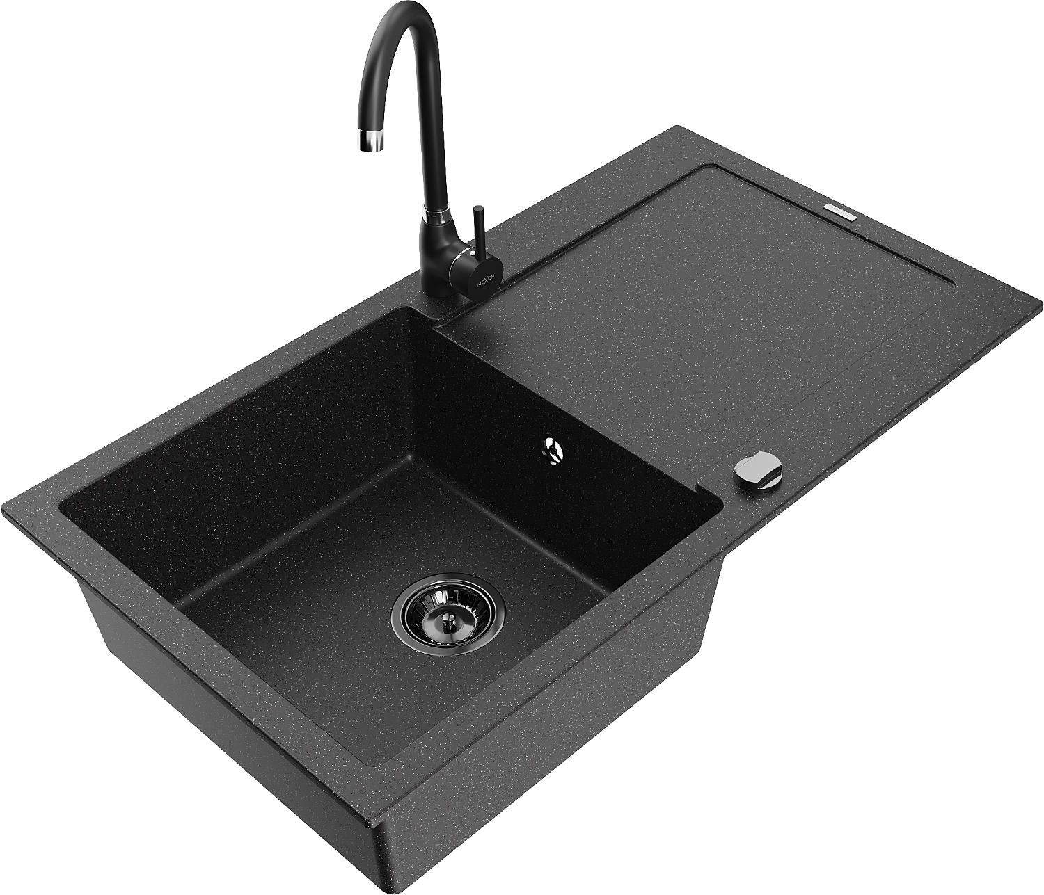 Mexen Leo едночелен мивка от гранит с отцедник и кухненски смесител Telma, черен/сребърен металик - 6501-73-670200-70-B