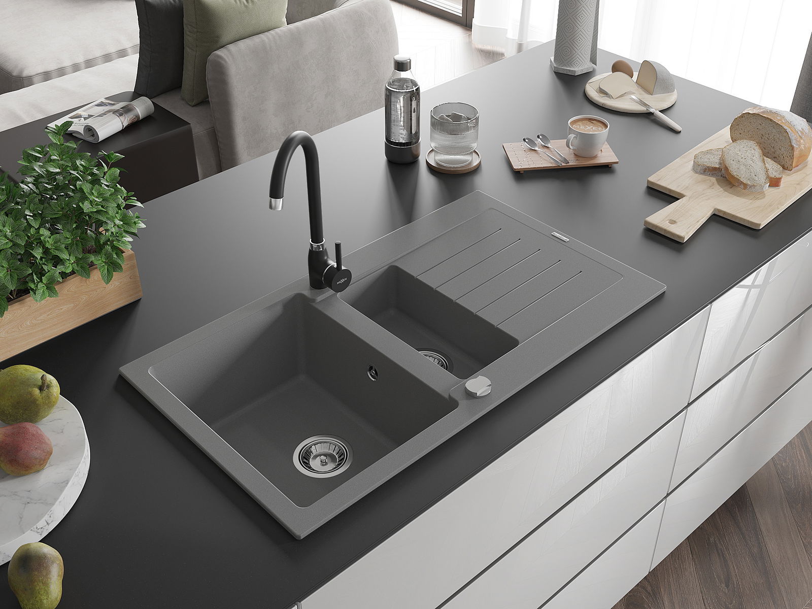 Мивката е направена от висококачествен гранит. Това е елегантно и най -вече практично допълнение към всяка кухня, независимо от нейния стил. Висококачествената и гранитна издръжливост осигуряват много години употреба.