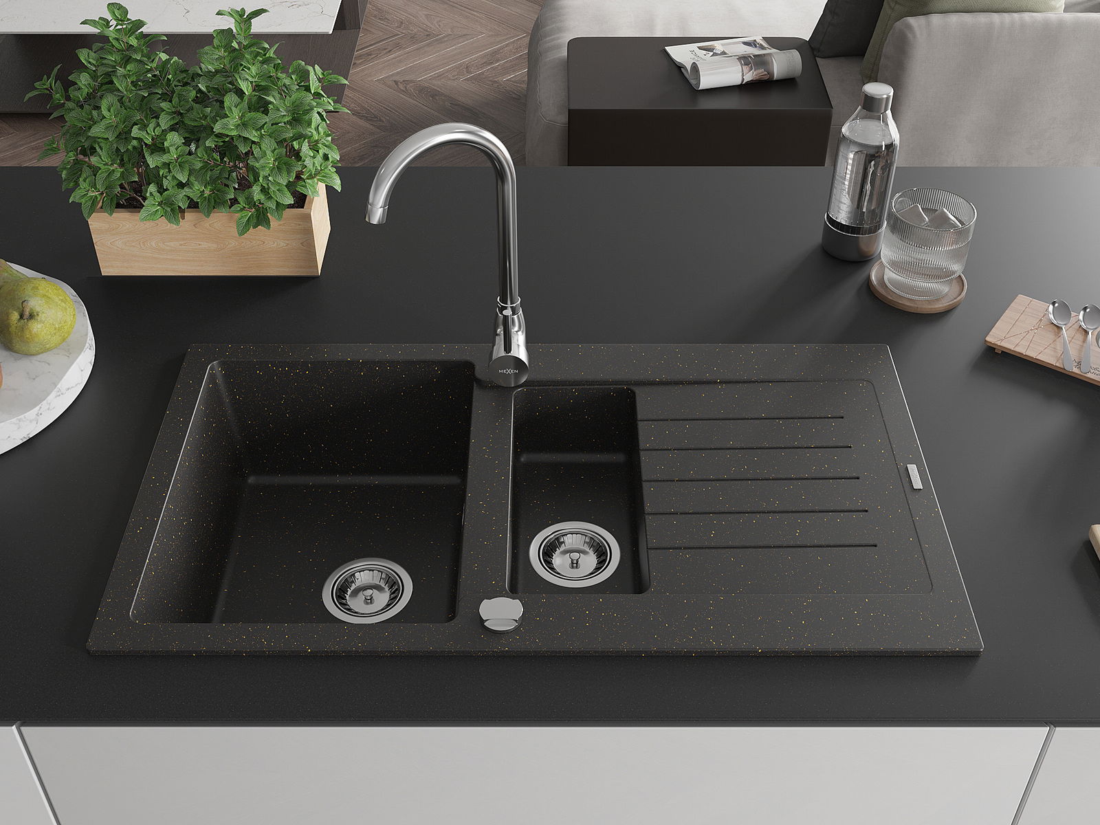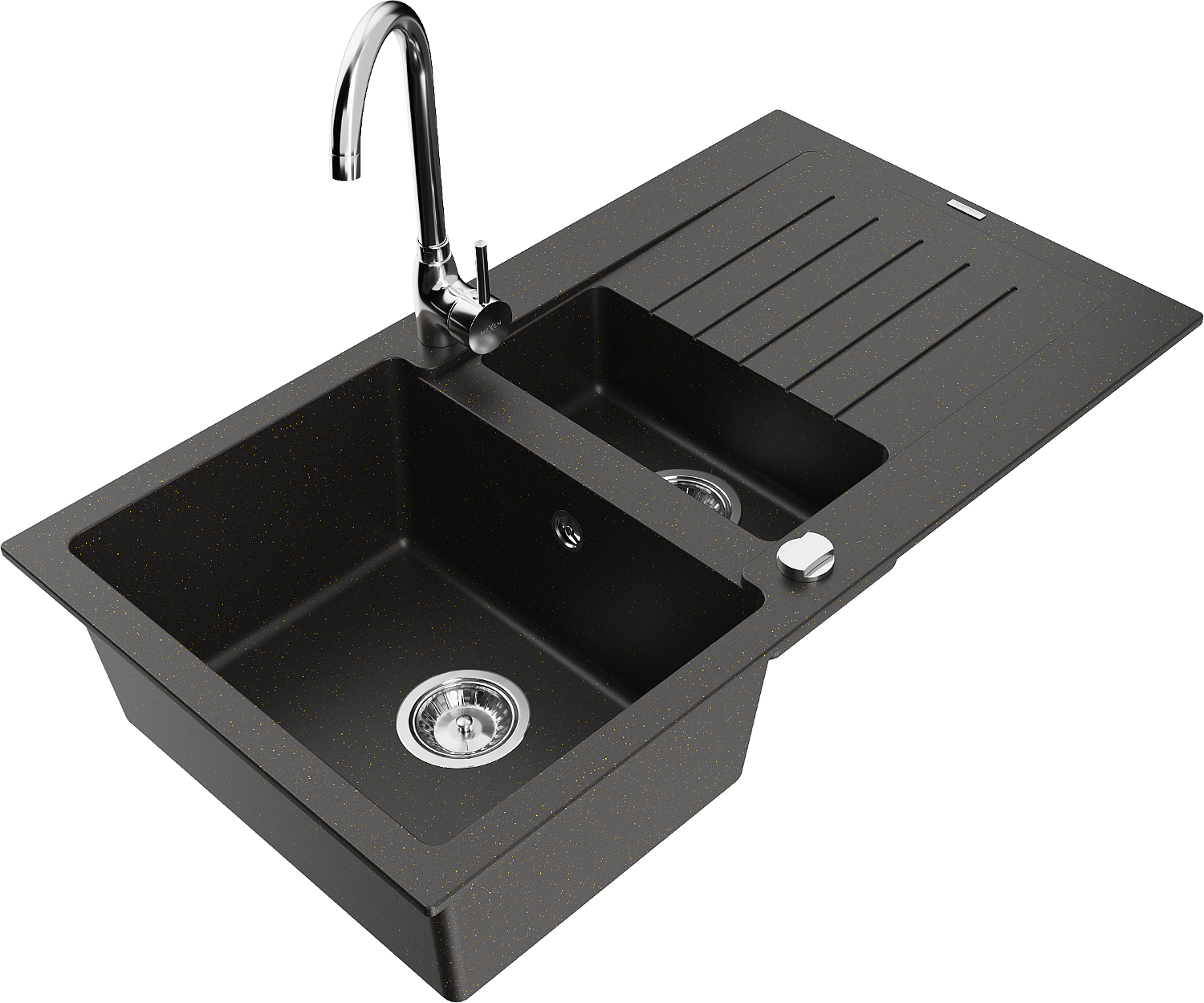 Mexen Matias гранитна мивка с 1,5 отделения с отцедник и кухненски смесител