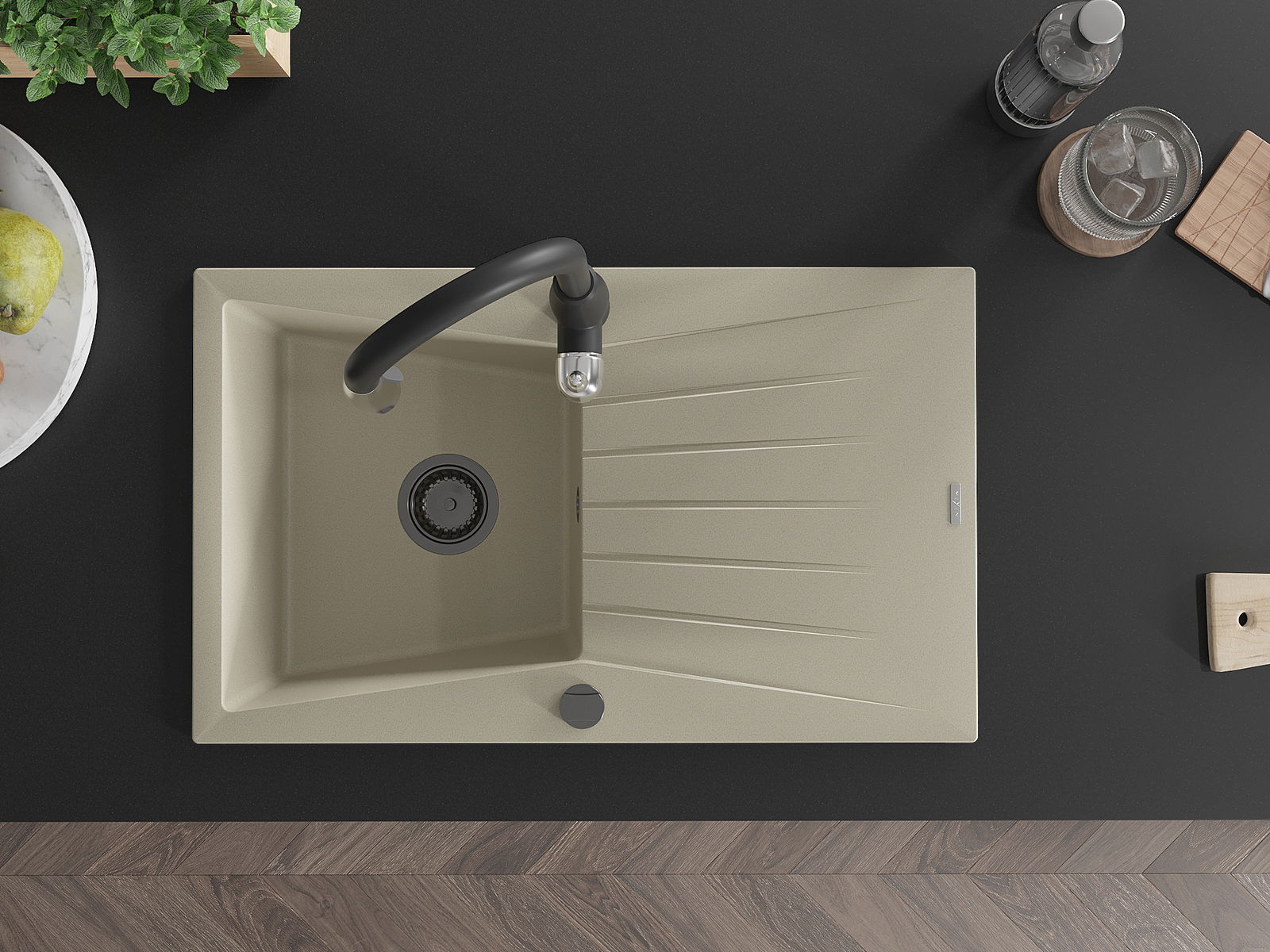 Мивки Mexen Cesar от гранит с 1 отделение с отцедник и кухненски смесител Savita, бежов - 6514-69-672601-70