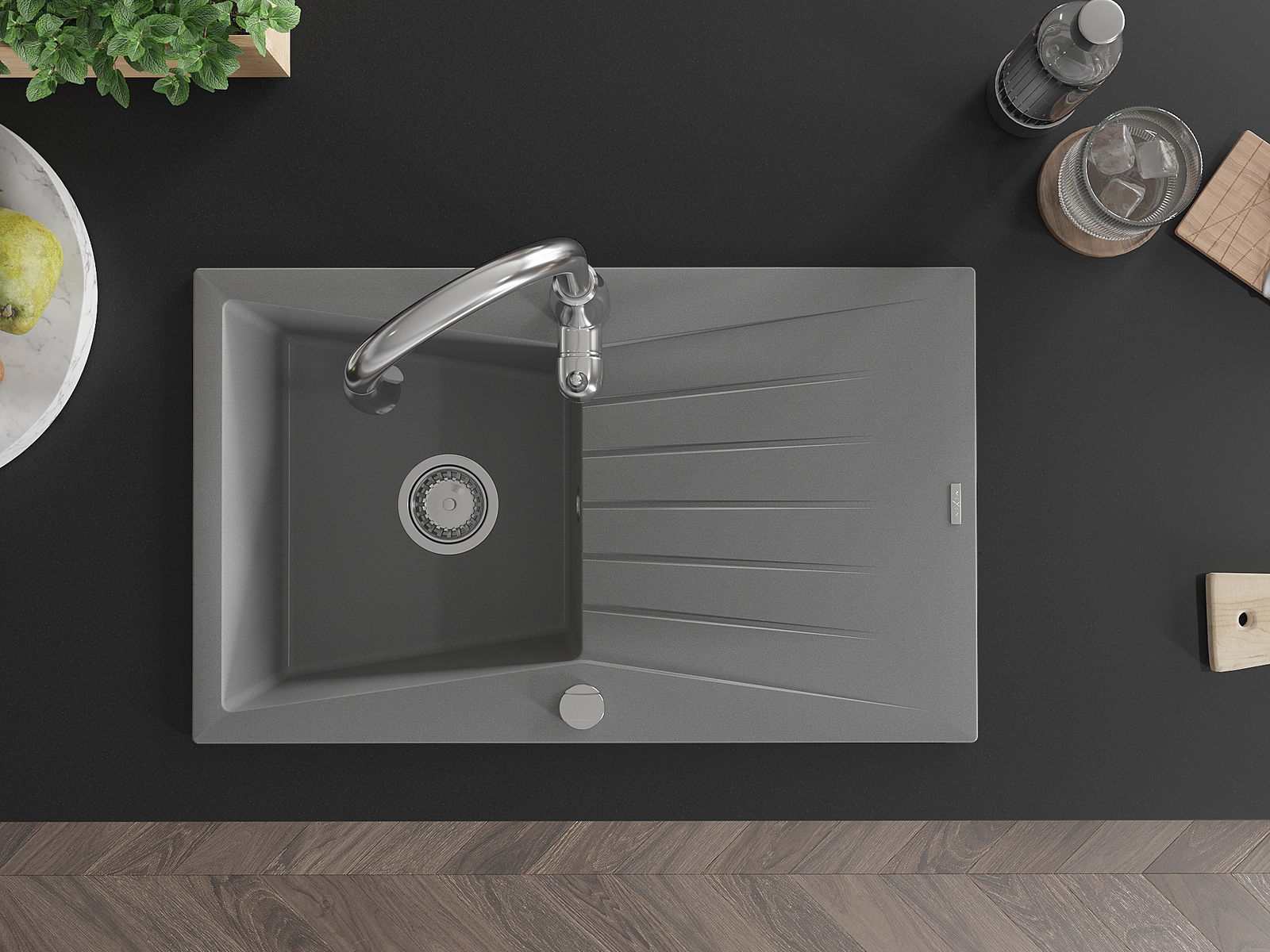 Мивката е направена от висококачествен гранит. Това е елегантно и най -вече практично допълнение към всяка кухня, независимо от нейния стил. Висококачествената и гранитна издръжливост осигуряват много години употреба.