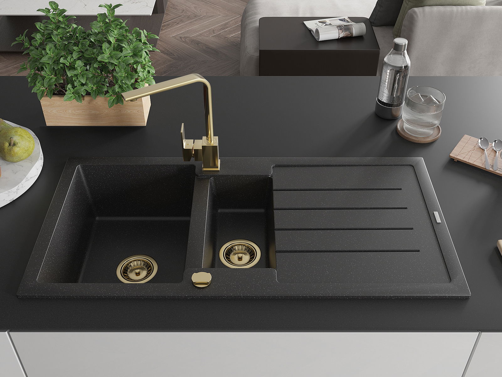 Мивката е направена от висококачествен гранит. Това е елегантно и най -вече практично допълнение към всяка кухня, независимо от нейния стил. Висококачествената и гранитна издръжливост осигуряват много години употреба.
