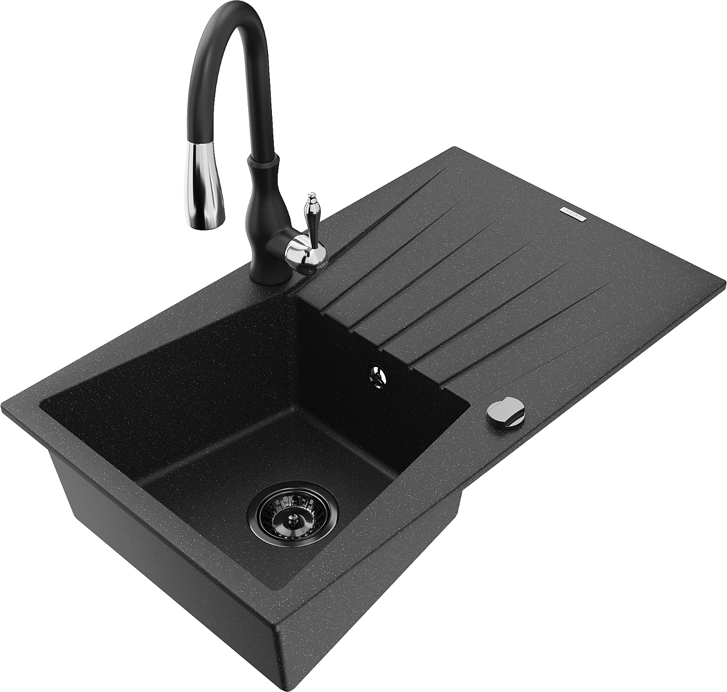 Мивката е направена от висококачествен гранит. Това е елегантно и най -вече практично допълнение към всяка кухня, независимо от нейния стил. Висококачествената и гранитна издръжливост осигуряват много години употреба.