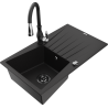 Mexen Cesar гранитна мивка с 1 отделение и отцедник и кухненски смесител Savita, черен/сребърен - 6514-73-672601-70-B