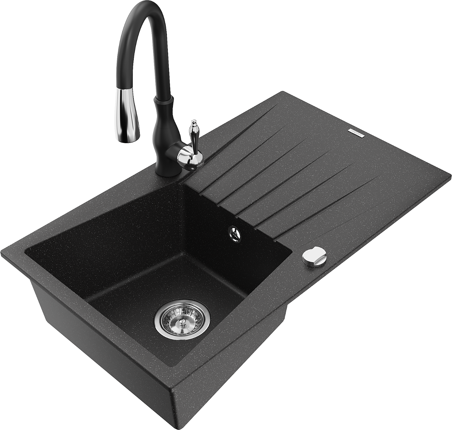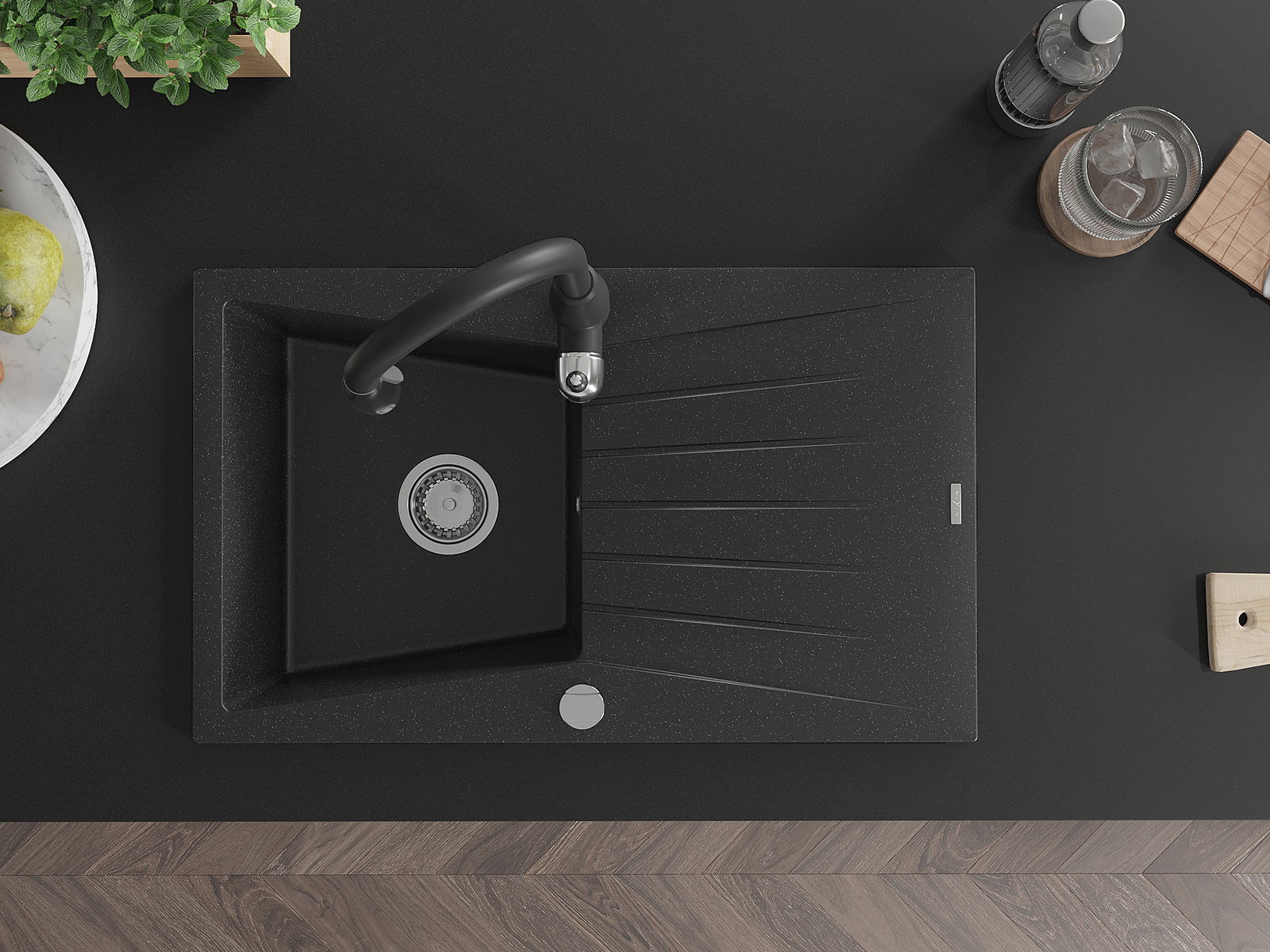 Mexen Cesar гранитна мивка с 1 отделение и сушилня, с кухненски кран Savita, черен/сребрист металик - 6514-73-672601-70