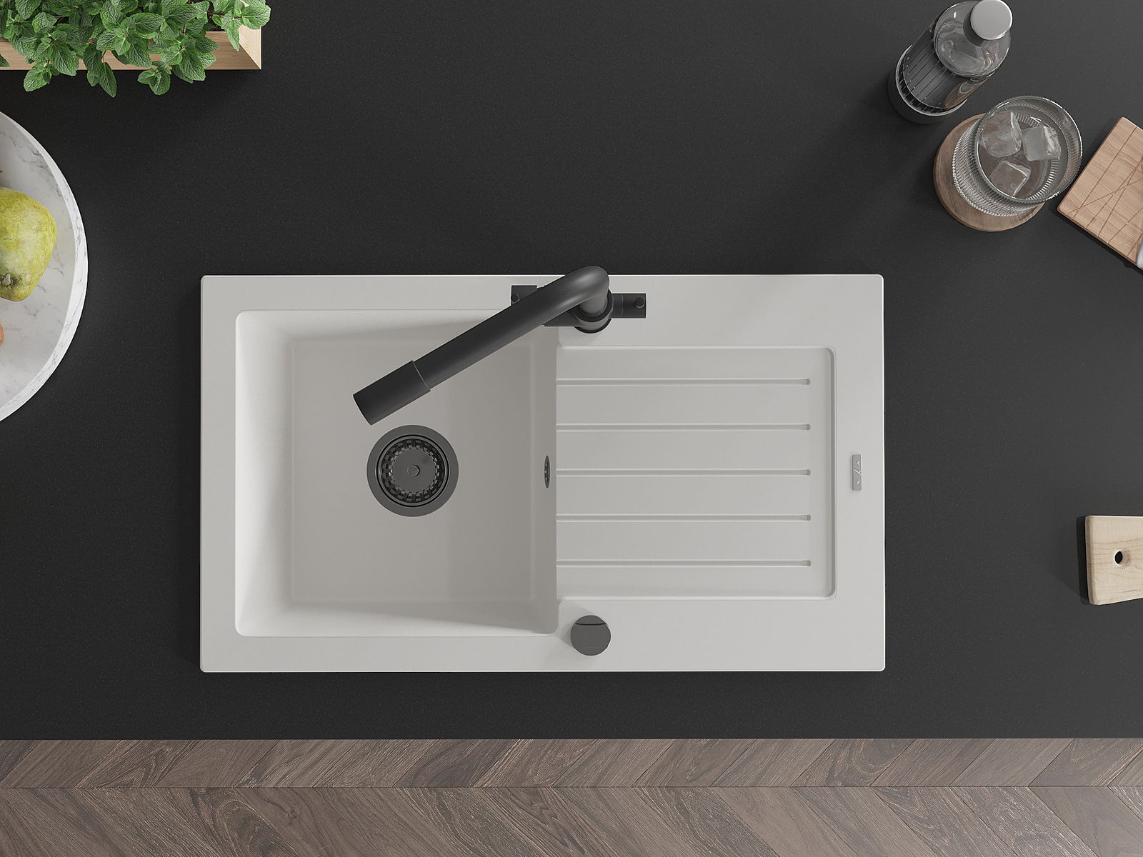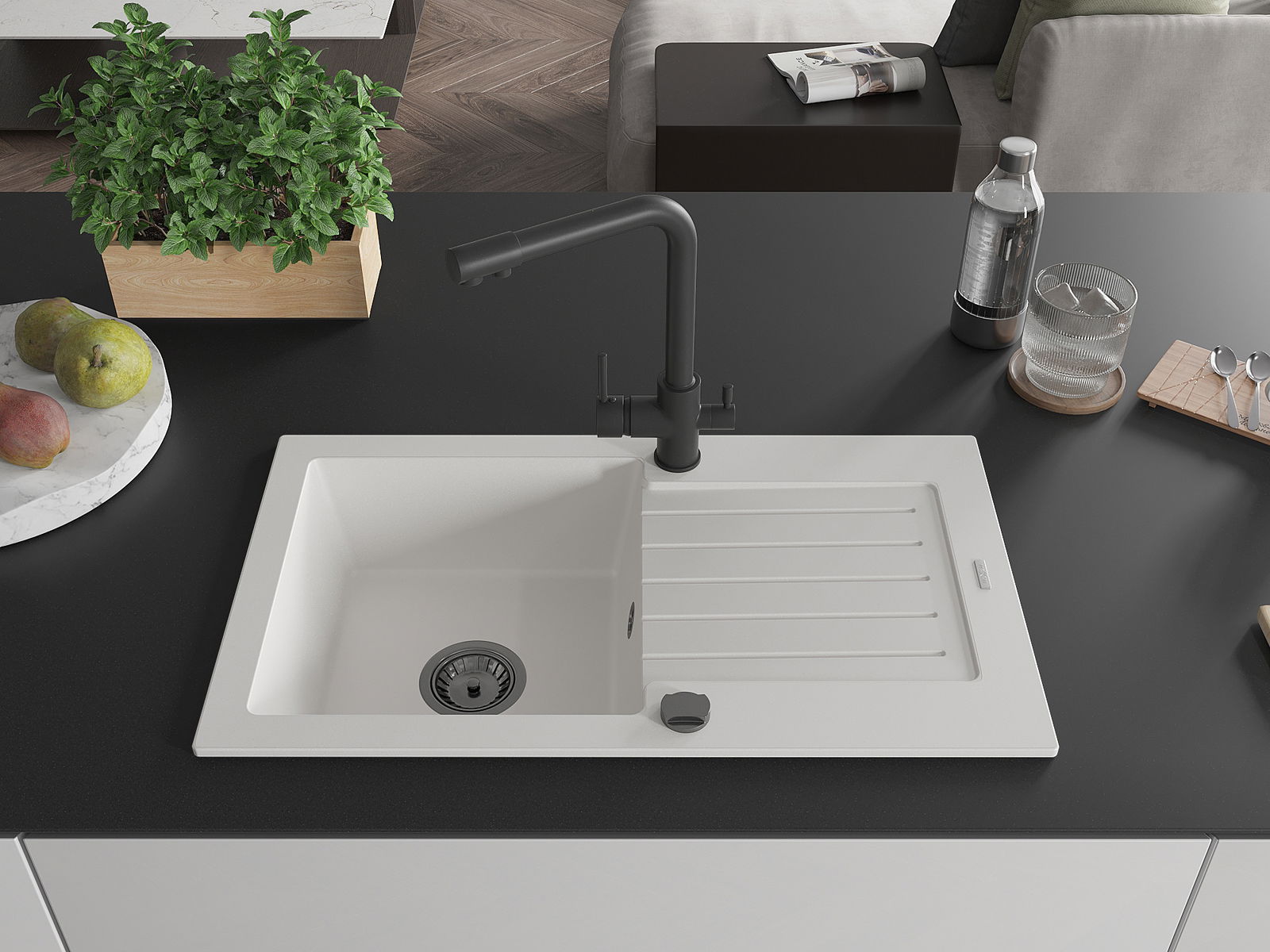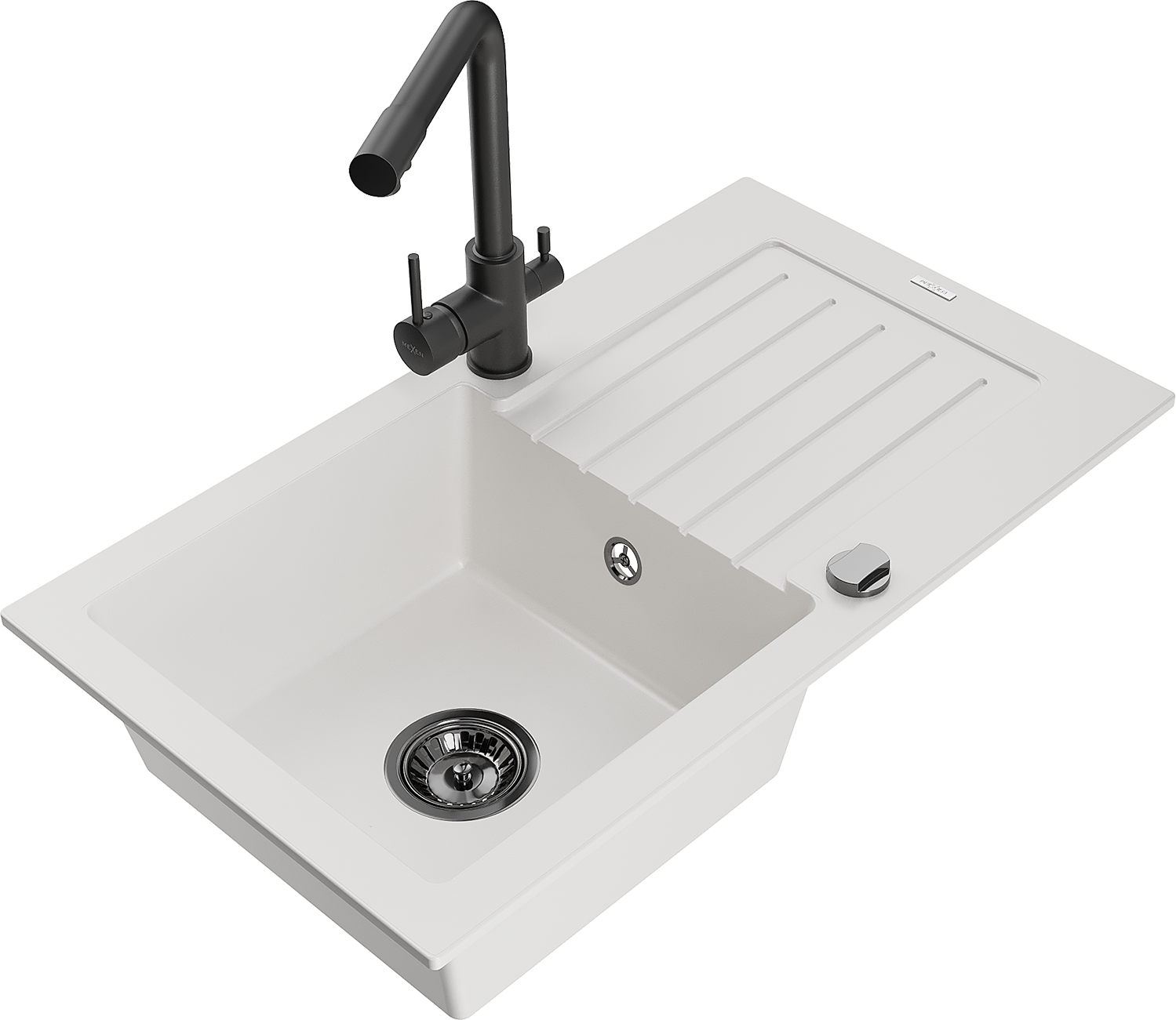 Mexen Pablo кухненска мивка от гранит с 1 отделение с дренаж и кухненски смесител Duero, бял - 6510-20-671600-70