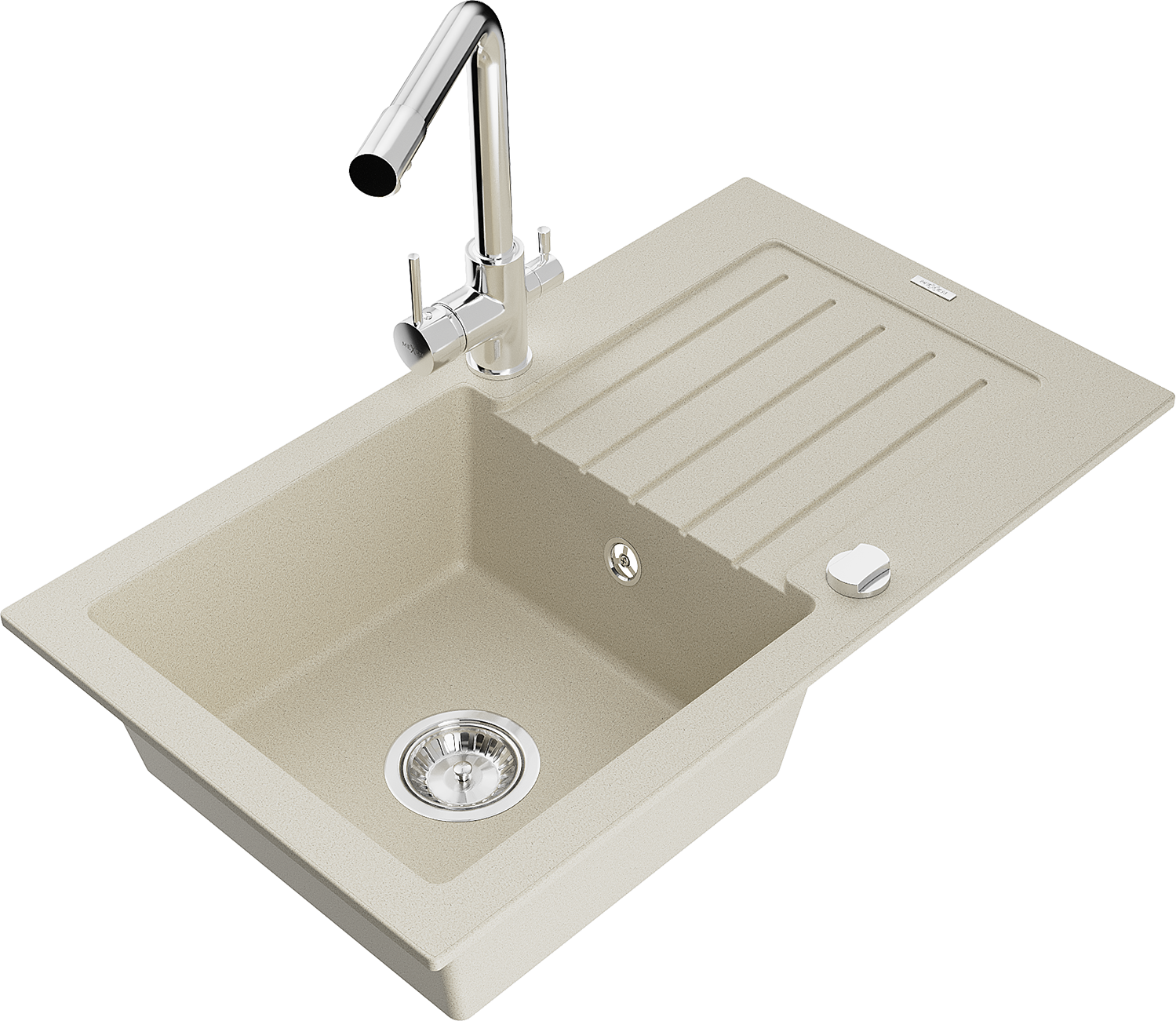 Mexen Pablo гранитна мивка с 1 отделение с отцедник и кухненски смесител Duero, бежов - 6510-69-671600-00