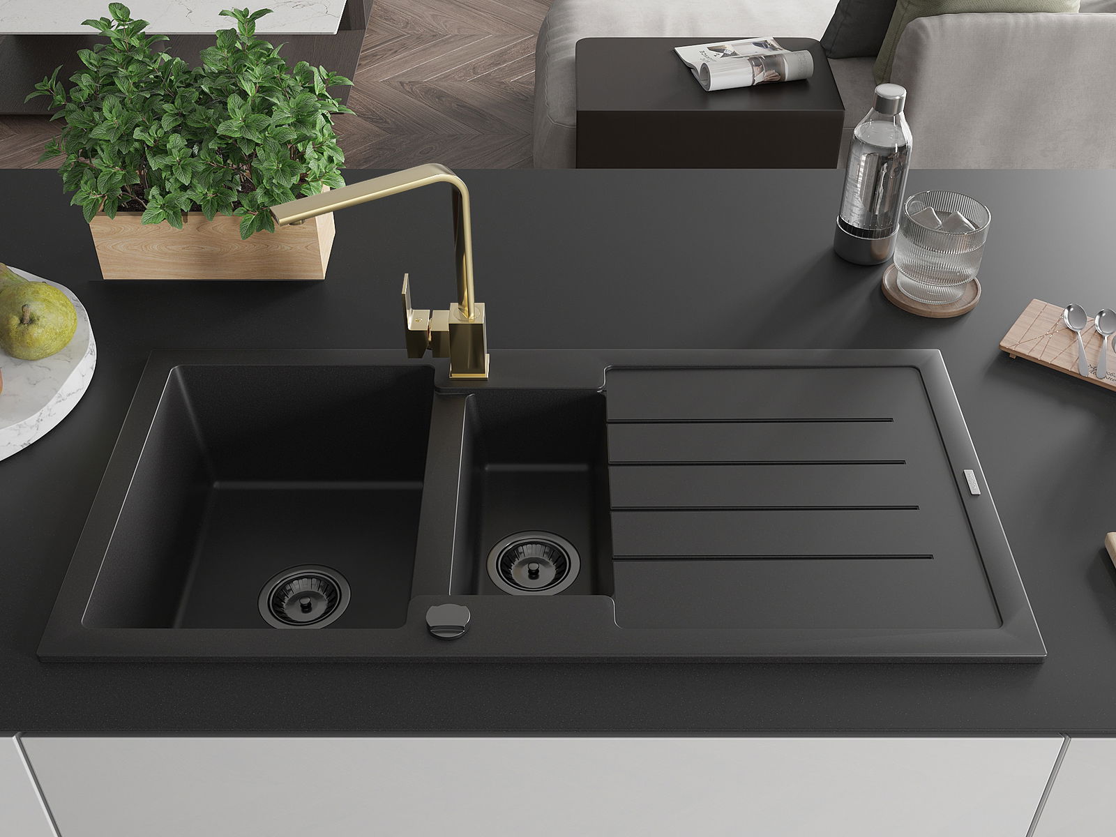Мивката е направена от висококачествен гранит. Това е елегантно и най -вече практично допълнение към всяка кухня, независимо от нейния стил. Висококачествената и гранитна издръжливост осигуряват много години употреба.