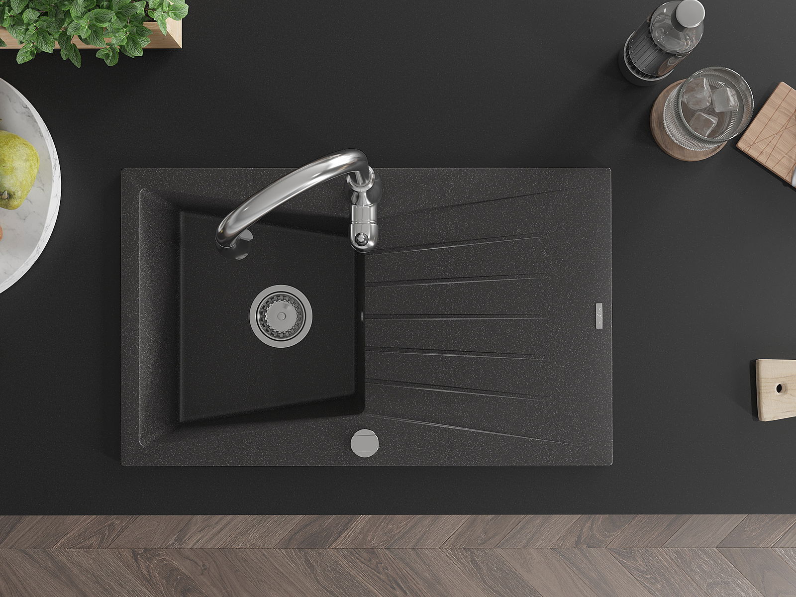 Мивката е направена от висококачествен гранит. Това е елегантно и най -вече практично допълнение към всяка кухня, независимо от нейния стил. Висококачествената и гранитна издръжливост осигуряват много години употреба.