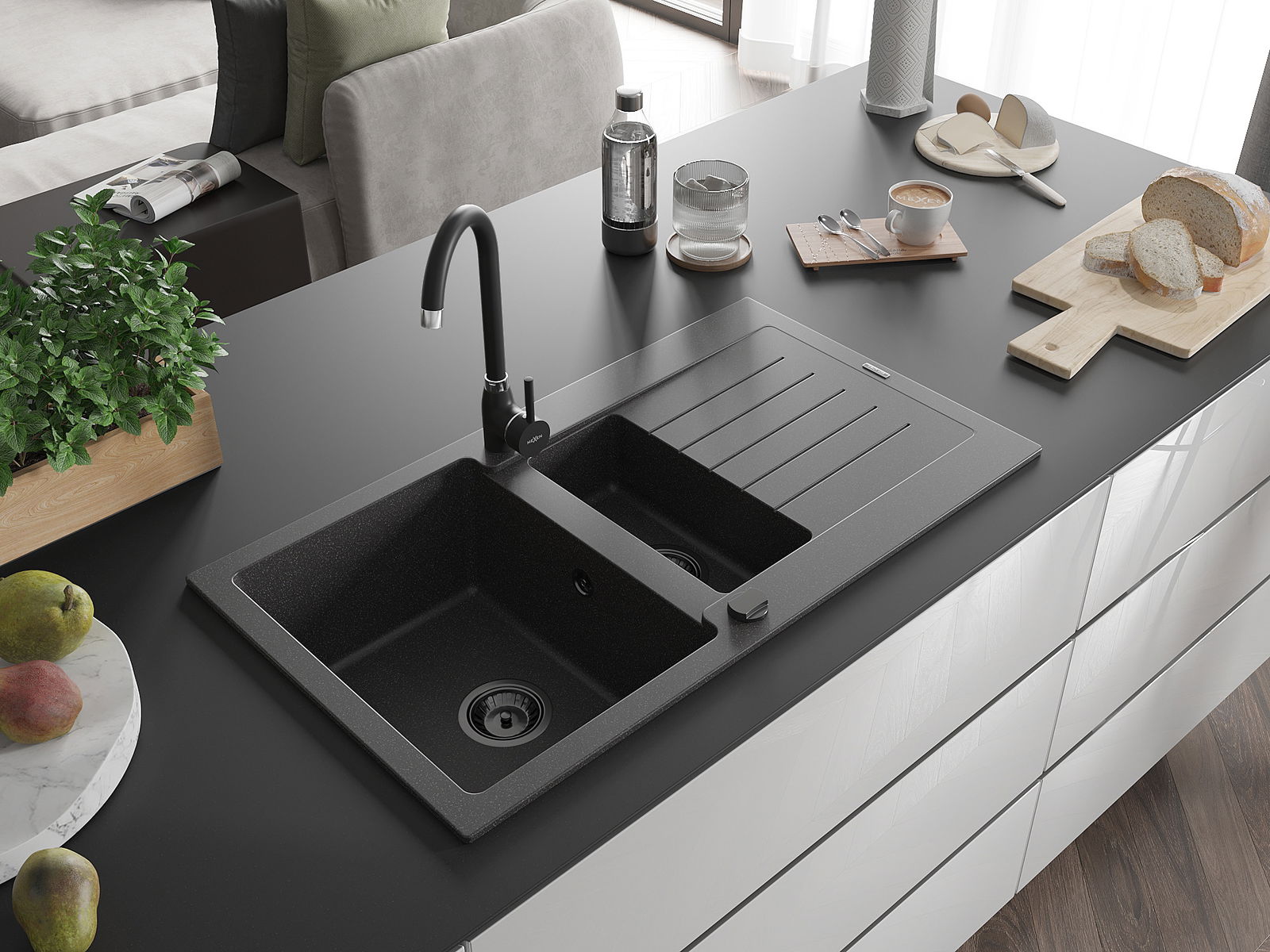 Мивката е направена от висококачествен гранит. Това е елегантно и най -вече практично допълнение към всяка кухня, независимо от нейния стил. Висококачествената и гранитна издръжливост осигуряват много години употреба.