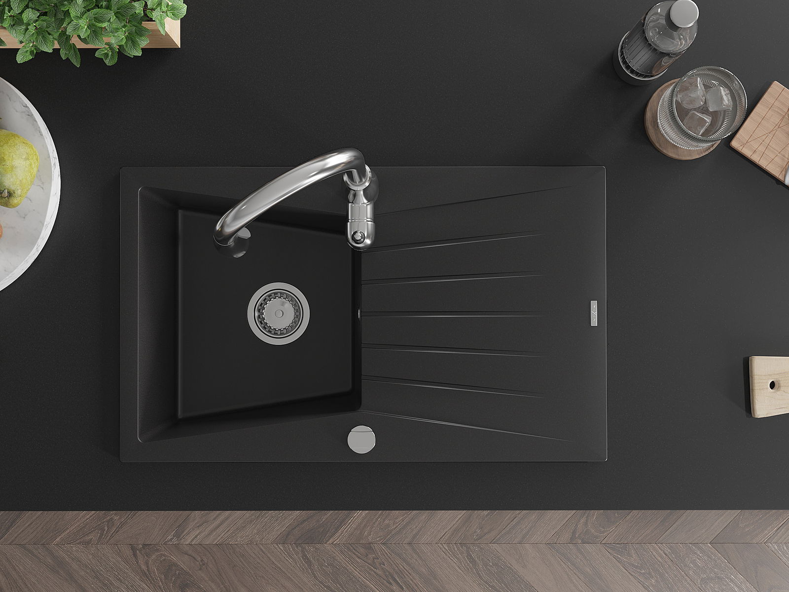 Мивката е направена от висококачествен гранит. Това е елегантно и най -вече практично допълнение към всяка кухня, независимо от нейния стил. Висококачествената и гранитна издръжливост осигуряват много години употреба.