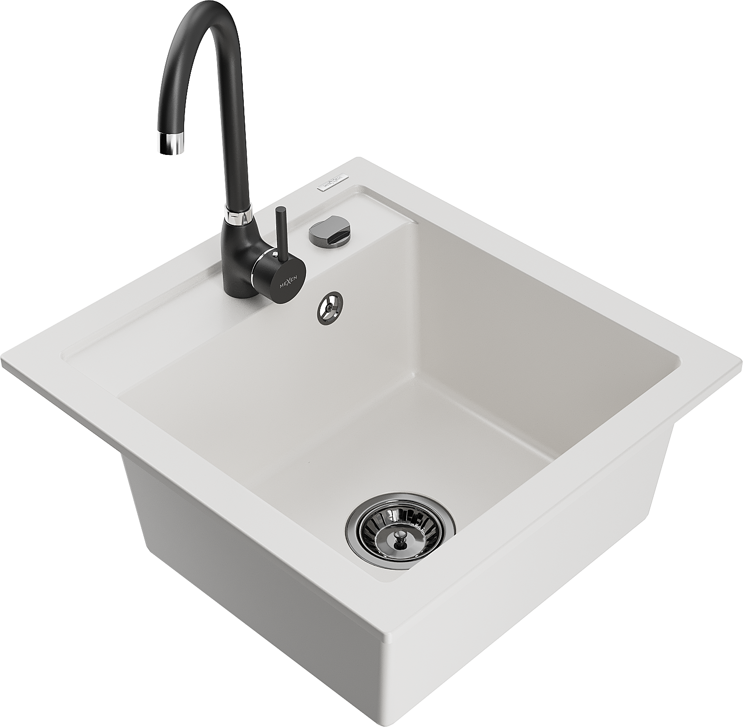 Mexen Vito гранитна мивка с 1 отделение с кухненски смесител Telma, бял - 6503-20-670200-70