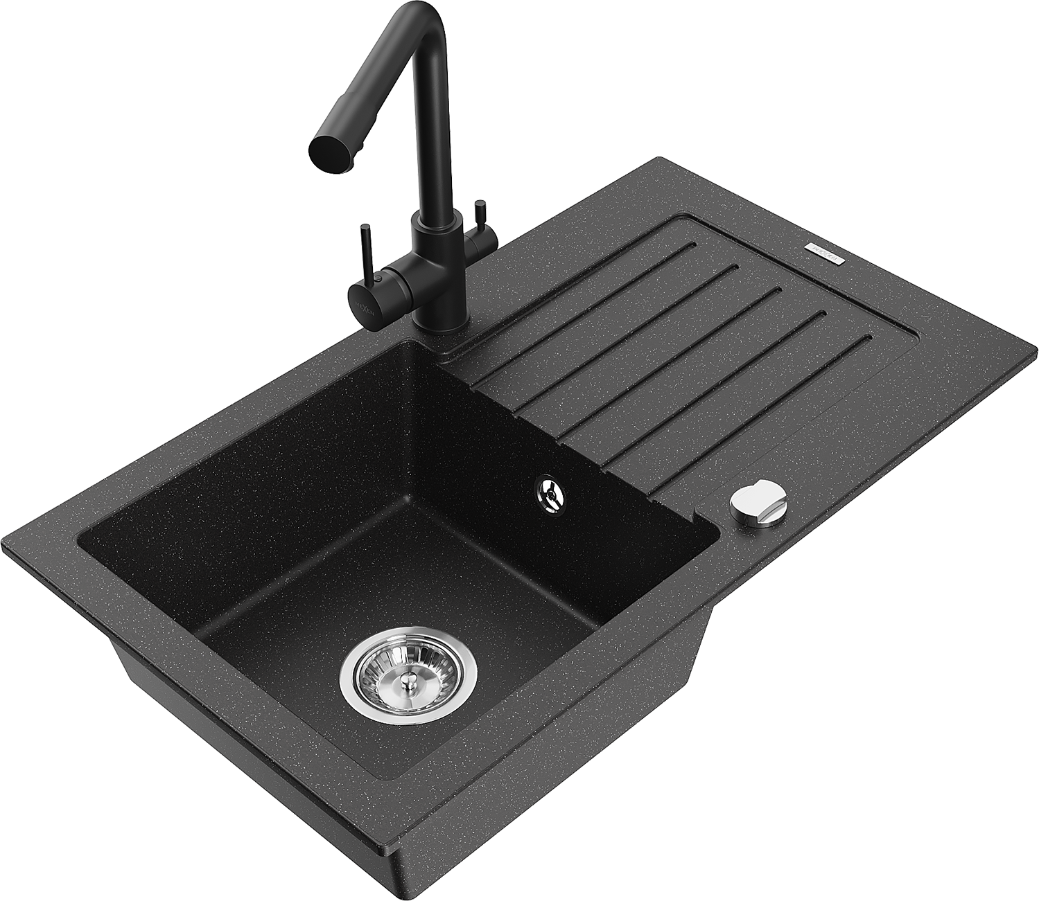 Mexen Pablo гранитна мивка с 1 отделение с отцедник и кухненски кран Duero,