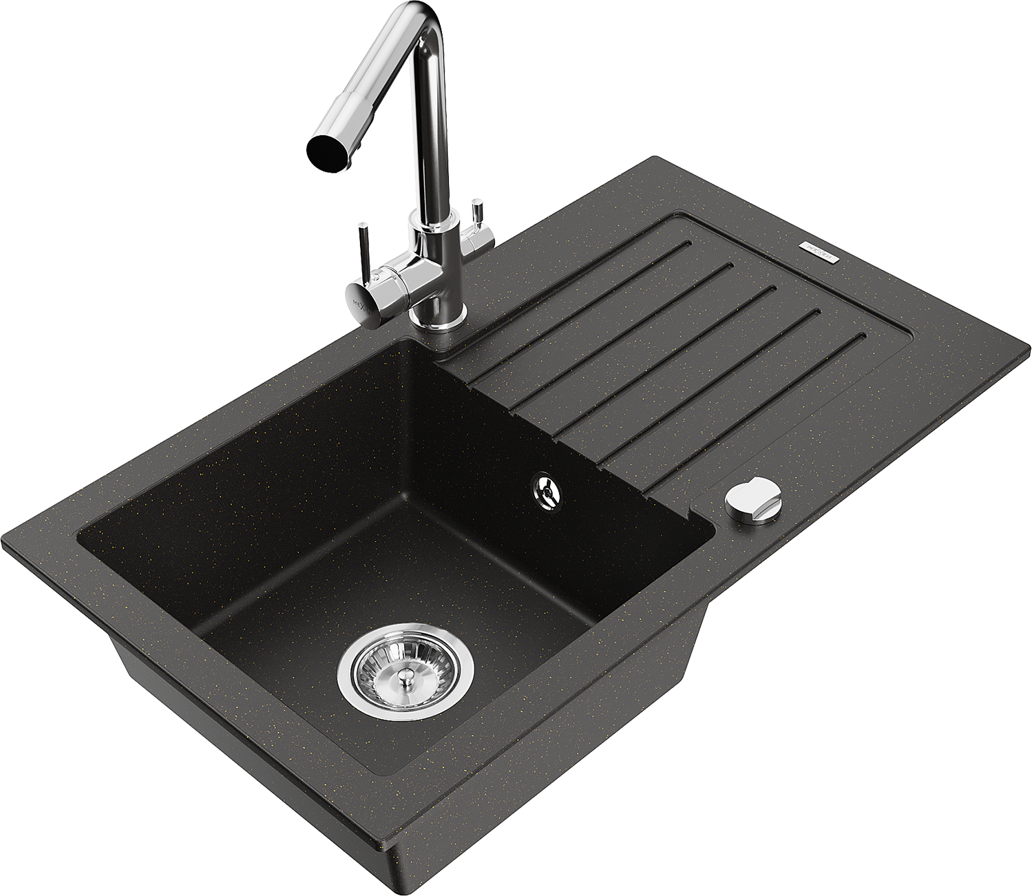 Mexen Pablo гранитна мивка с 1 отделение с отцедник и кухненски смесител Duero, черен/златист металик - 6510-75-671600-00