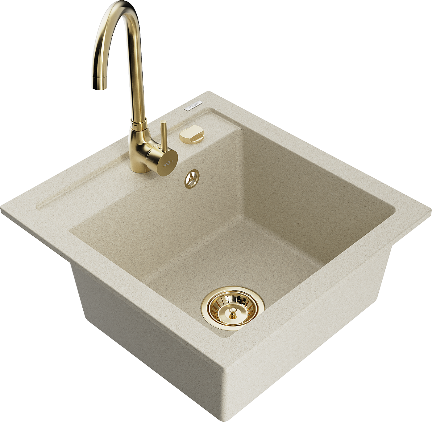 Mexen Vito гранитна мивка с 1 отделение и кухненски смесител Telma, бежов - 6503-69-670200-50