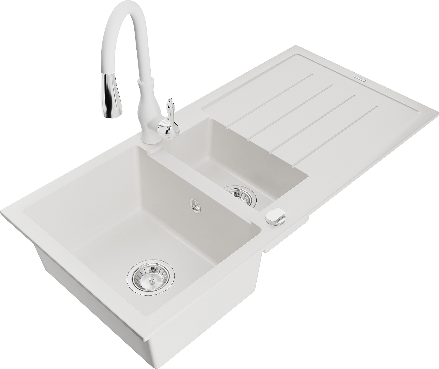 Mexen Andres 1,5-кратно мивка от гранит с отцедник и кухненски смесител Savita, бял - 6515-20-672601-20