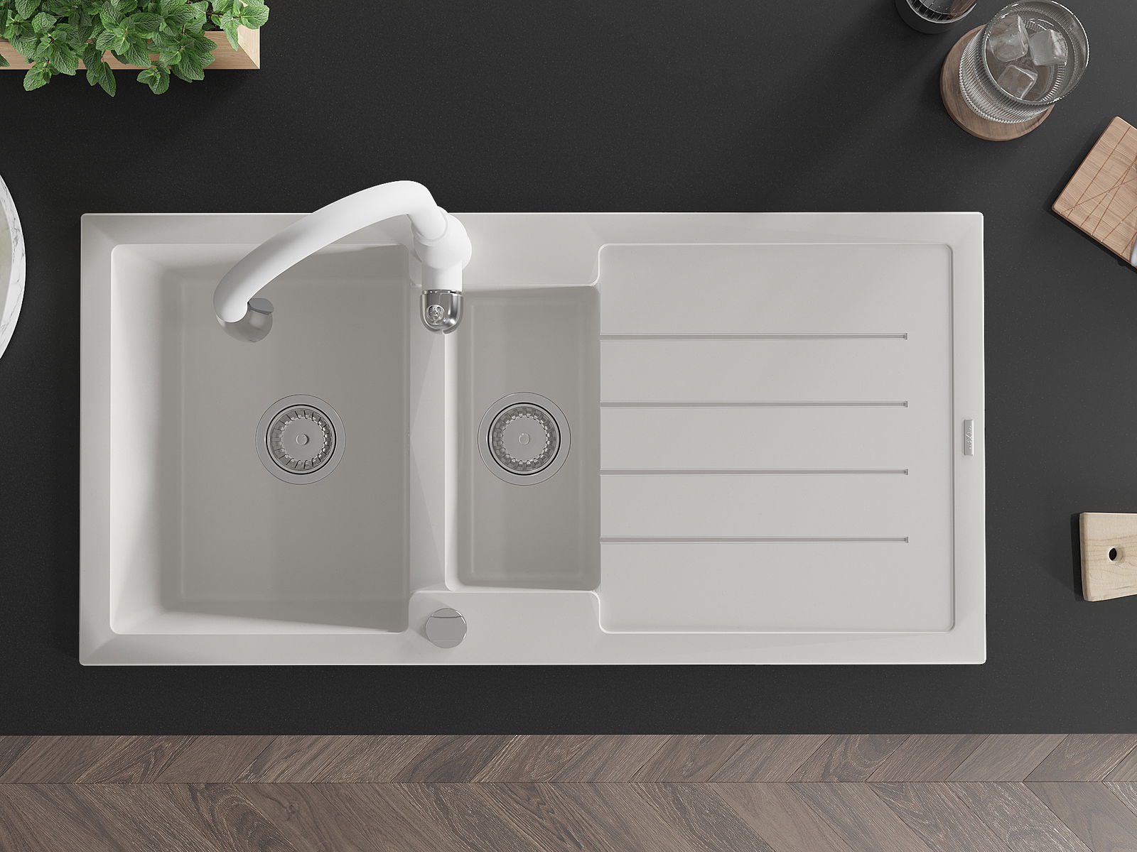 Повърхността на мивката е устойчива на петна и обезцветяване, благодарение на които е лесно да се почиства и запазва цвета си за дълго време. Естетически и практически допълващи всяка кухня.