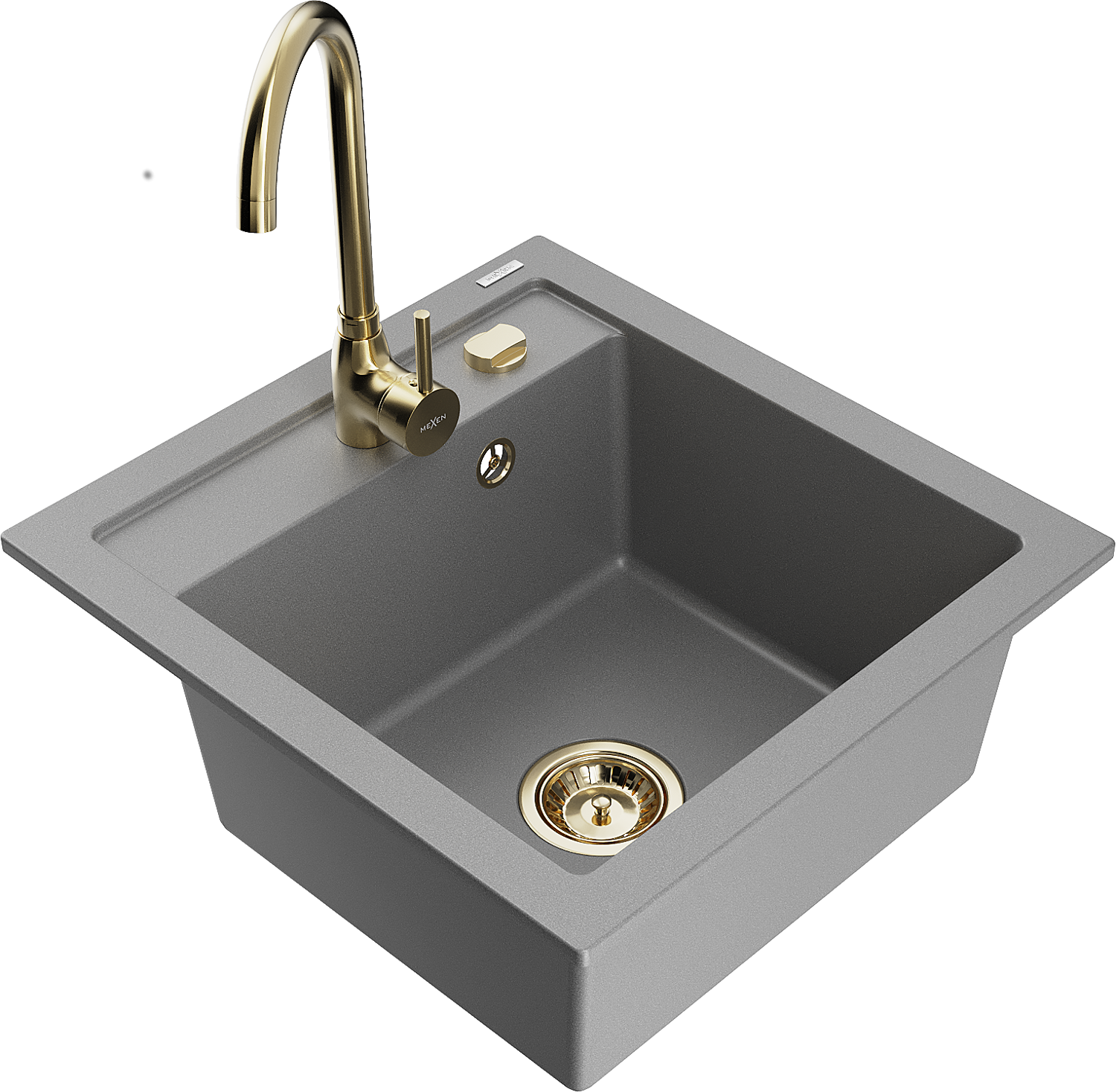 Mexen Vito гранитна мивка с една камера с кухненски смесител Telma, сив - 6503-71-670200-50