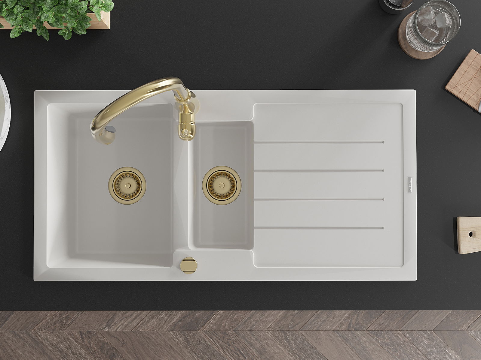 Повърхността на мивката е устойчива на петна и обезцветяване, благодарение на които е лесно да се почиства и запазва цвета си за дълго време. Естетически и практически допълващи всяка кухня.
