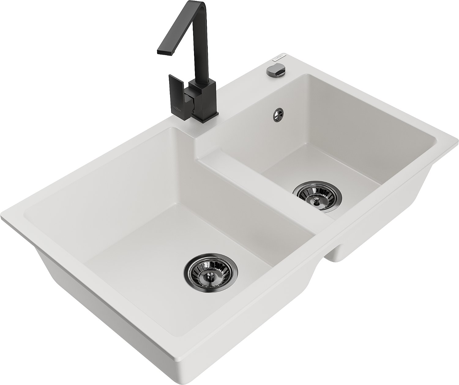 Mexen Tomas гранитна кухненска мивка с 2 отделения с кухненски смесител Rita, бял - 6516-20-670300-70