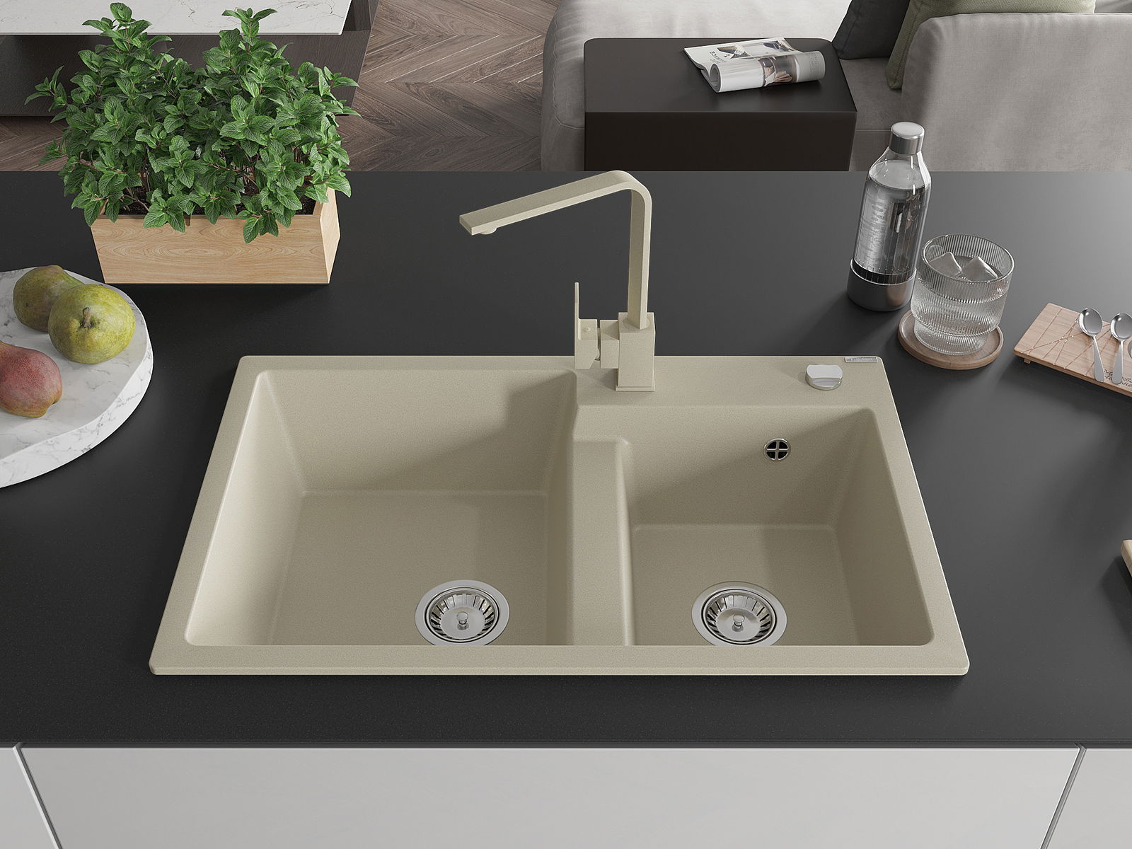Повърхността на мивката е устойчива на петна и обезцветяване, благодарение на които е лесно да се почиства и запазва цвета си за дълго време. Естетически и практически допълващи всяка кухня.